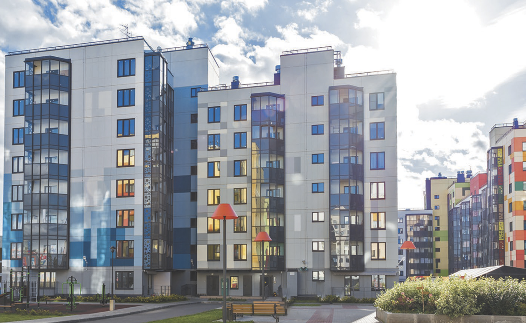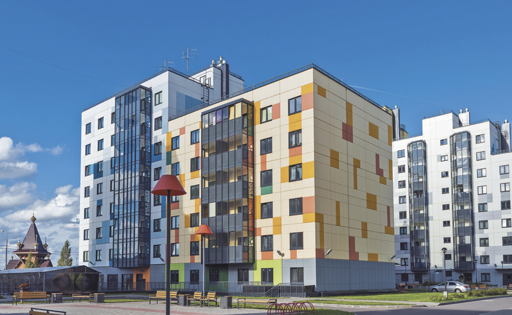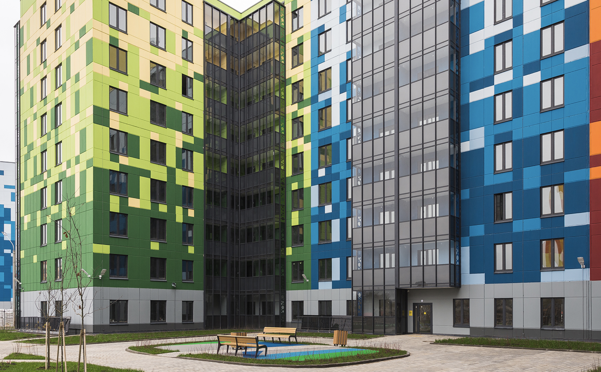 В состав объекта входят QR-библиотека, а также кафе, рестораны и встроенные помещения в доме являются продолжением прогулочной зоны с отсутствием лестниц. В секциях предусмотрены места для хранения колясок и велосипедов. Во дворе свободном от машин, установлены детские и спортивные площадки с безопасным покрытием. Придомовая территория оформлена по-авторскому дизайн-проекту и благоустроена ландшафтным дизайном. На первых этажах Очереди №4 предусмотрены коммерческие помещения. На территории комплекса есть бесплатный Wi-Fi и ведется видеонаблюдение.