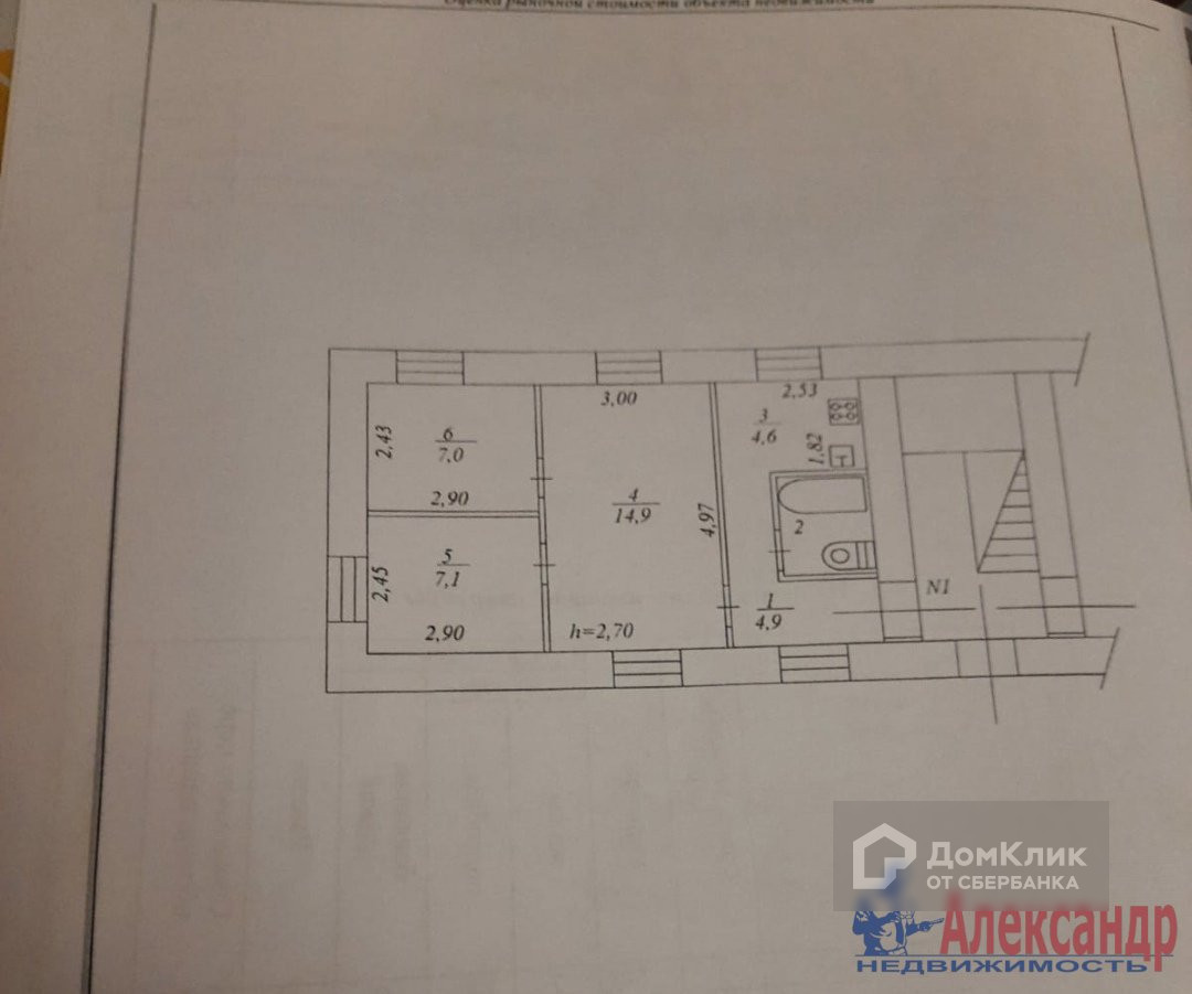 3-комнатная квартира, 41.4 м2, этаж 1 / 2, на продажу в Гатчине, улица Чкалова, 54А