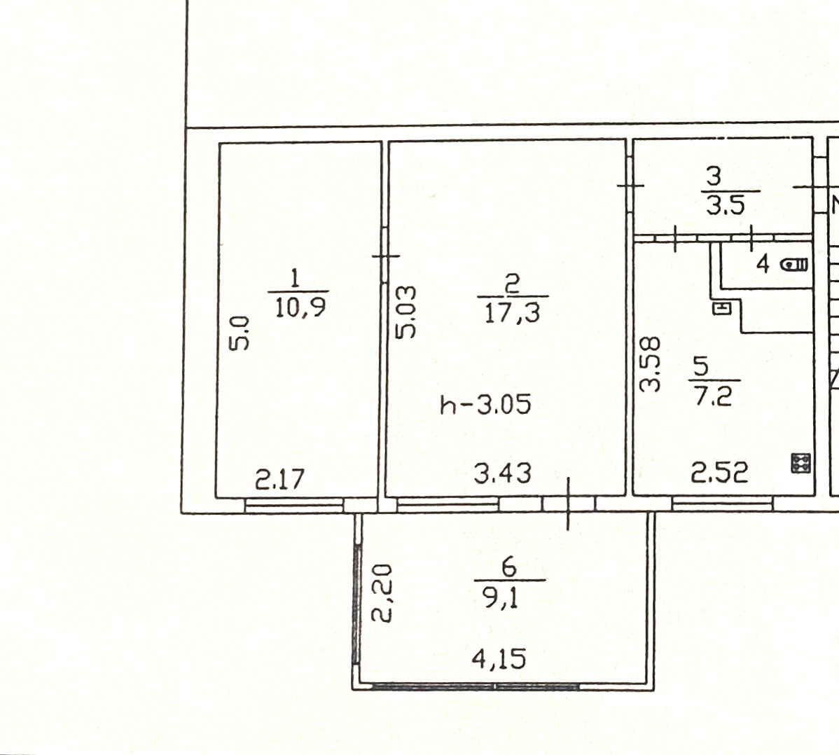 Высота потолков 2.6 м
