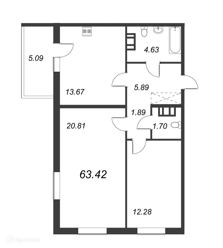 Общая площадь 64.4 м2