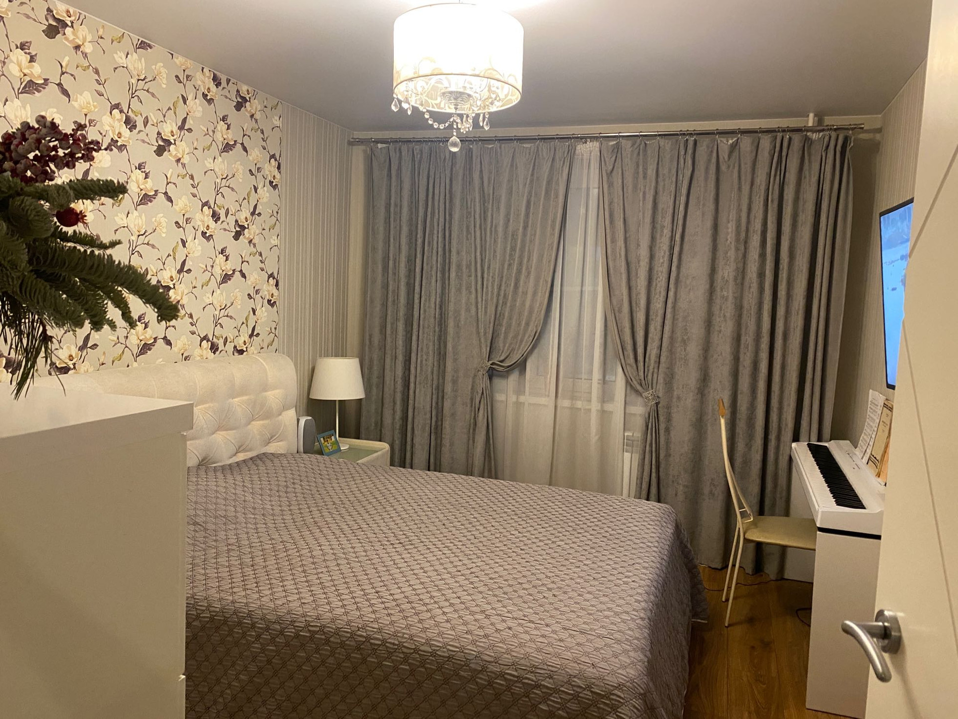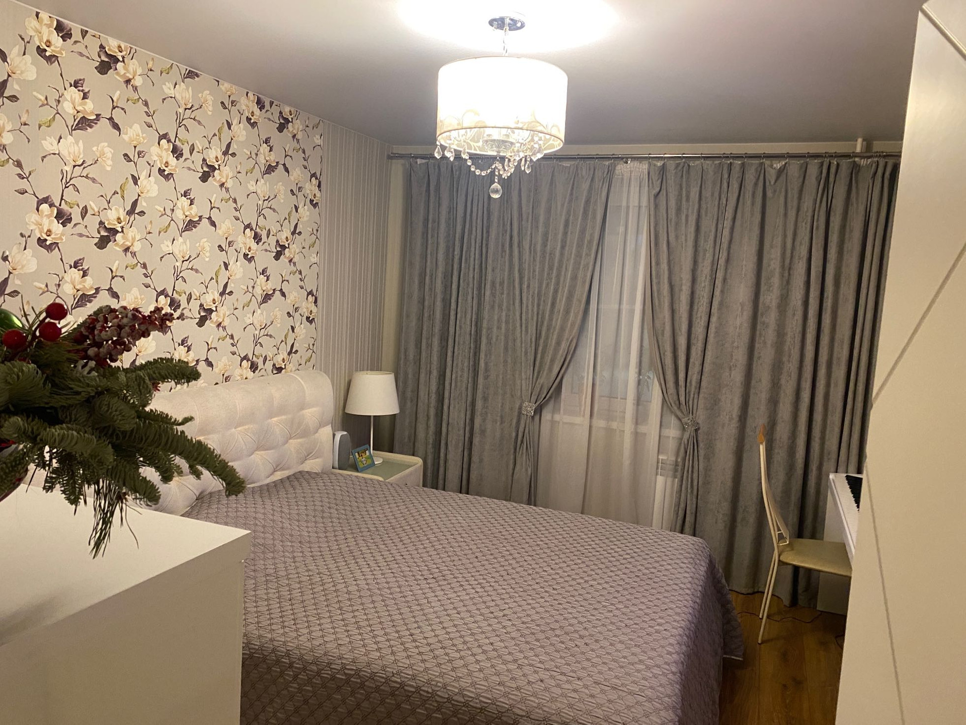 Уютная квартира с хорошим ремонтом, холл 20 кв.м, Новая кухня( без техники),мебель в ванной, большой шкаф в прихожей остается. Есть гардеробная и фальшкамин. Полы- ламинат, на  кухне, в прихожей и ванной - керамическая плитка. Квартира светлая и теплая, выходит на южную сторону. Окна выходят во двор (тихо) .Хорошие спокойные соседи. Рядом в 2 минутах остановки в СПб и центр Гатчины. Во дворе отлич