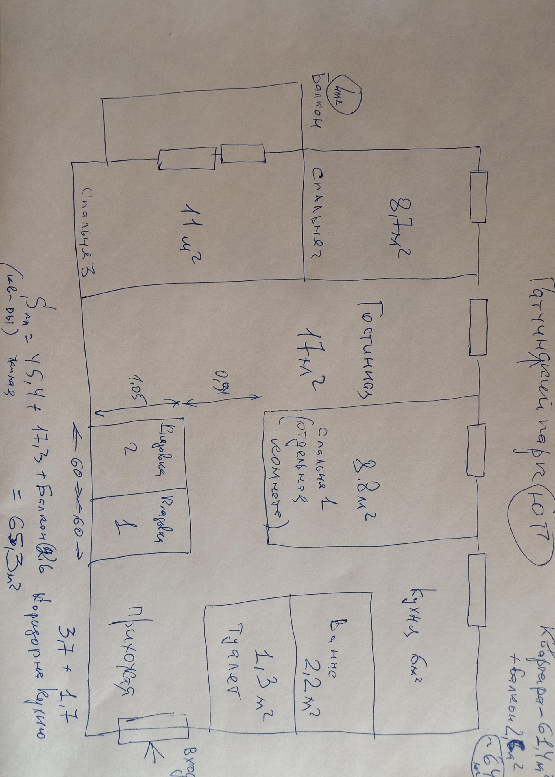 Общая площадь 61.4 м2