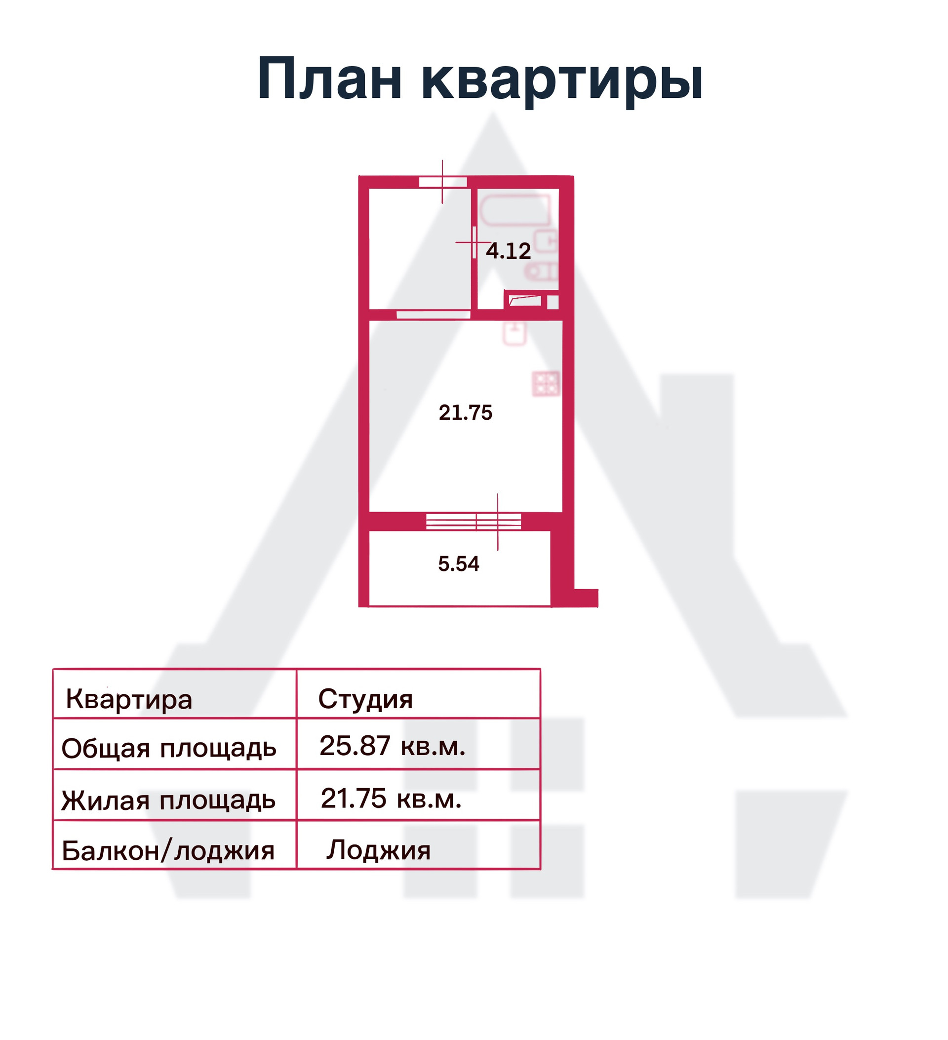 Общая площадь 25.87 м2