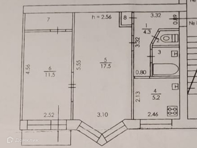 Большая комната (17.5 кв м) с эркером. Маленькая (11,5 кв м) с балконом и большой кладовкой. Комнаты смежные. Раздельный санузел, есть небольшая кладовка в коридоре.