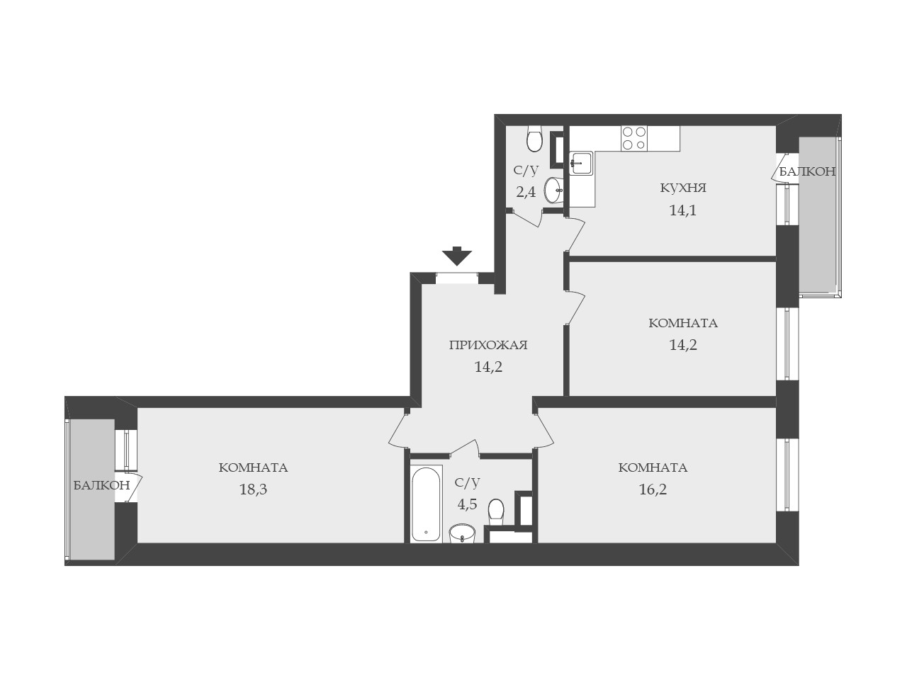 Площадь кухни 14.1 м2