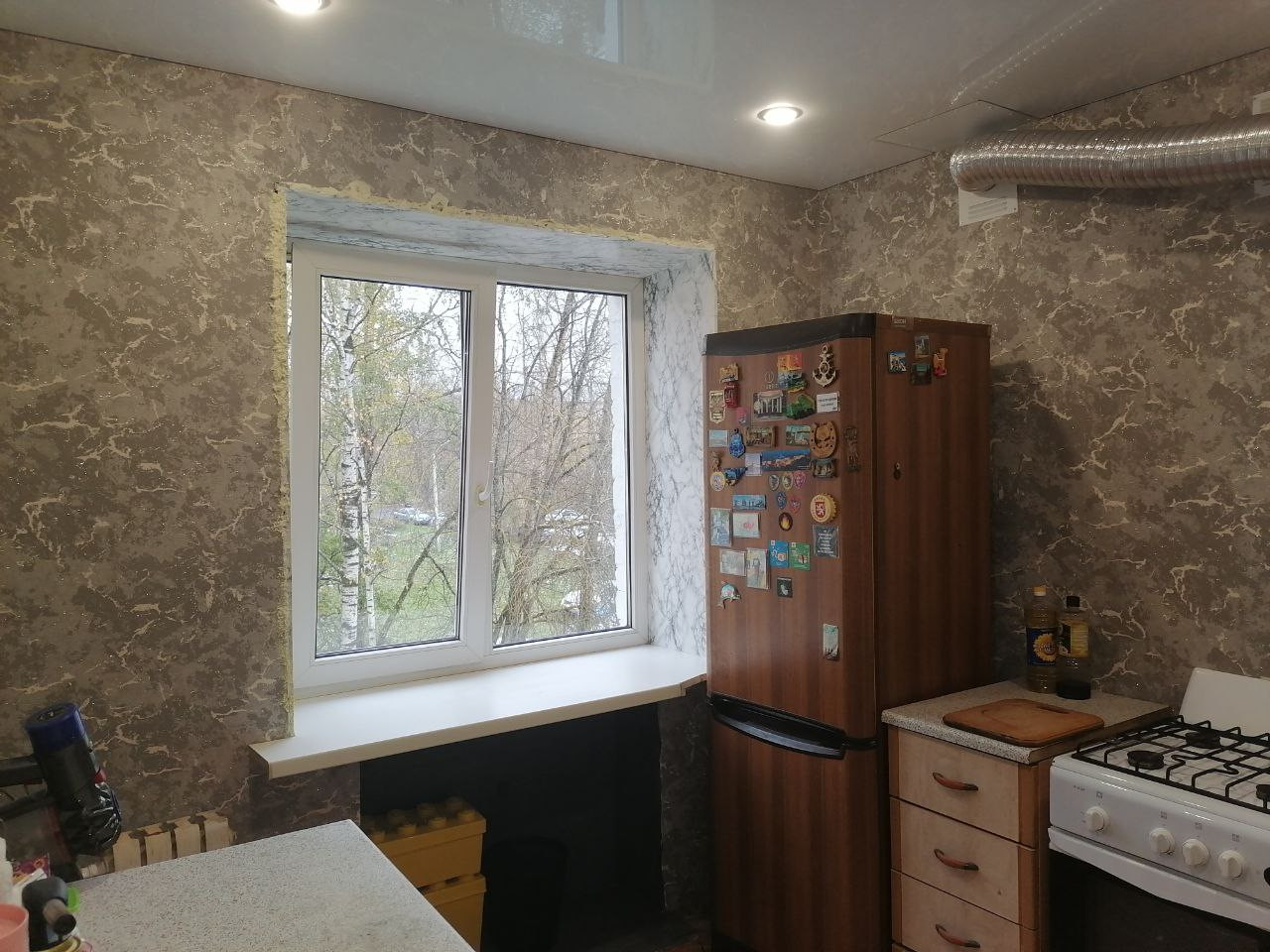Во всей квартире стоят качественные стеклопакеты, установлены натяжные потолки.