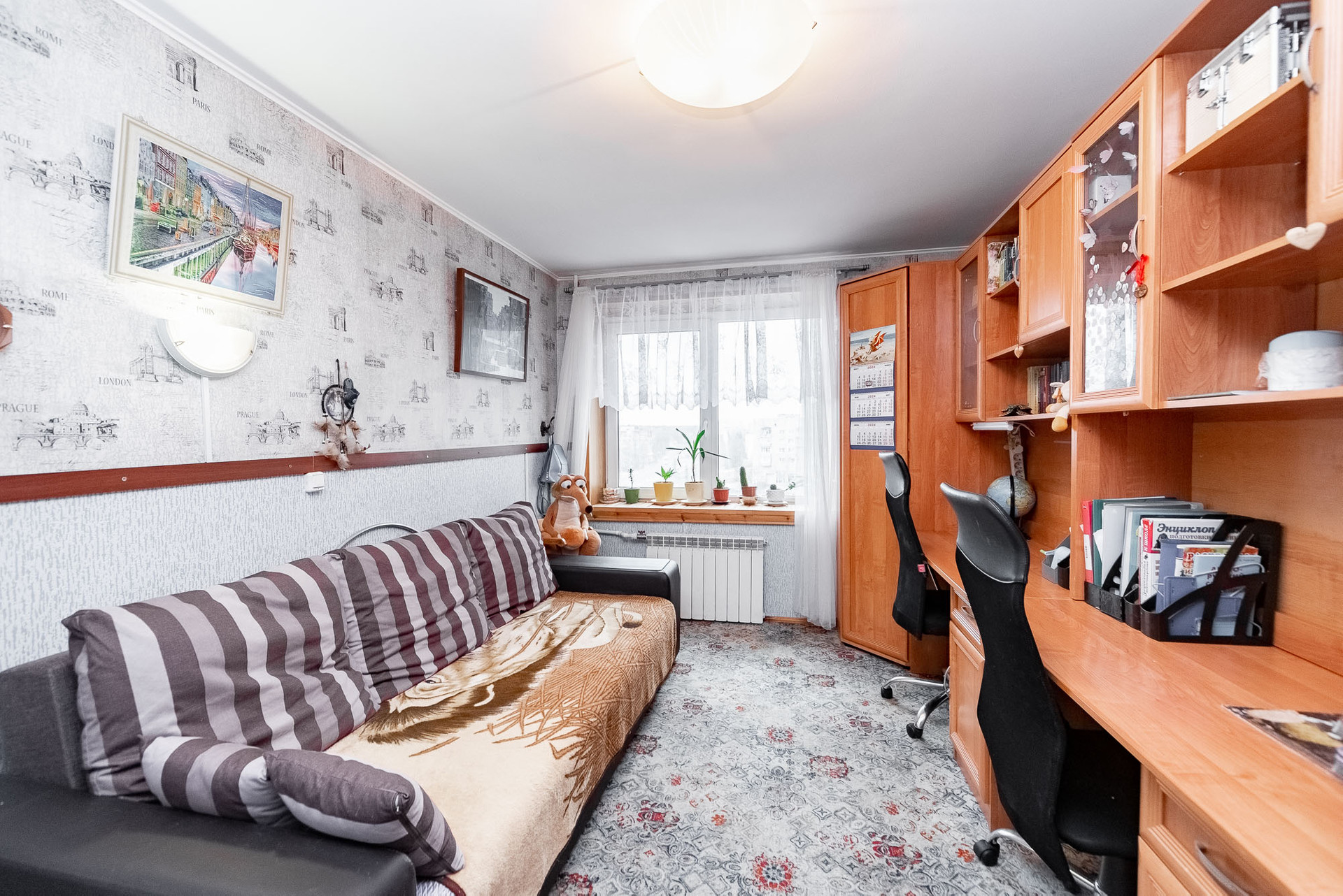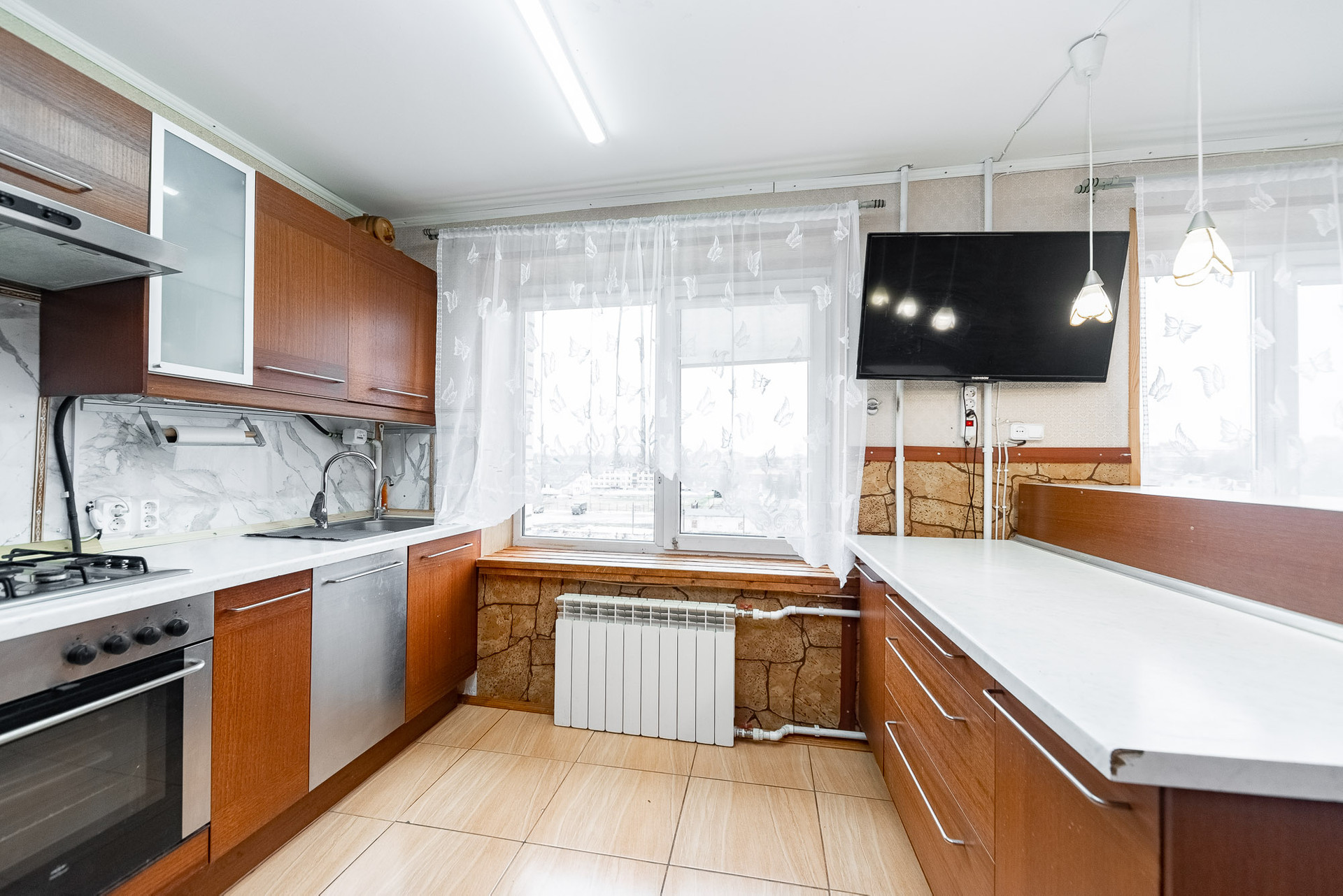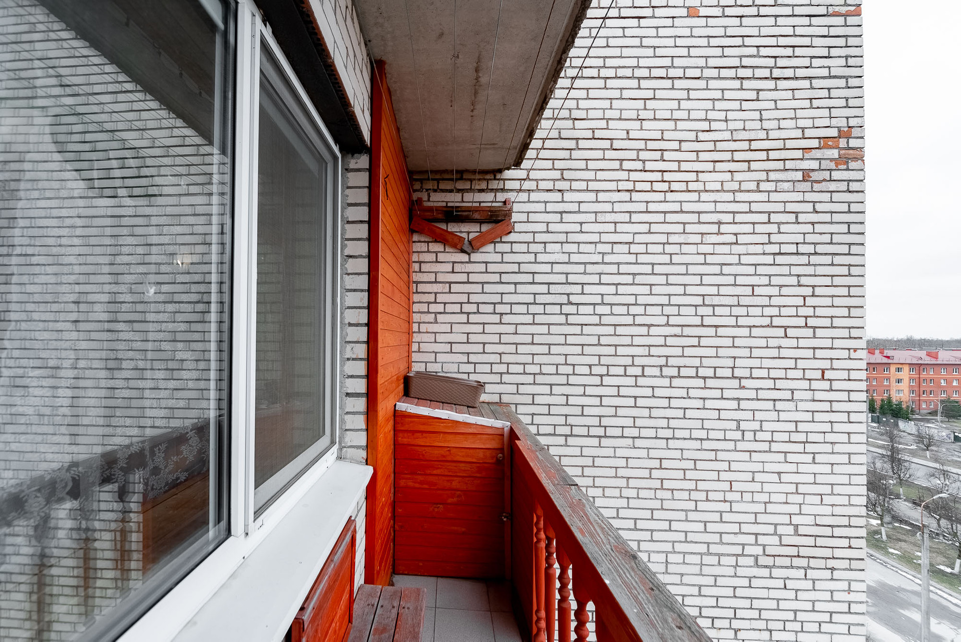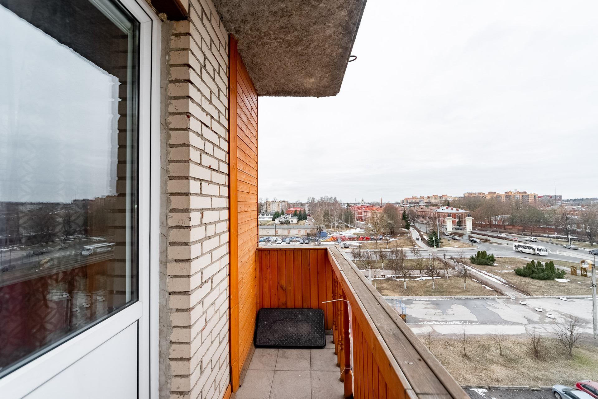 С Лоджии отличный вид города с двух сторон. Можно не выходя из квартиры наблюдать праздники и праздничные салюты.