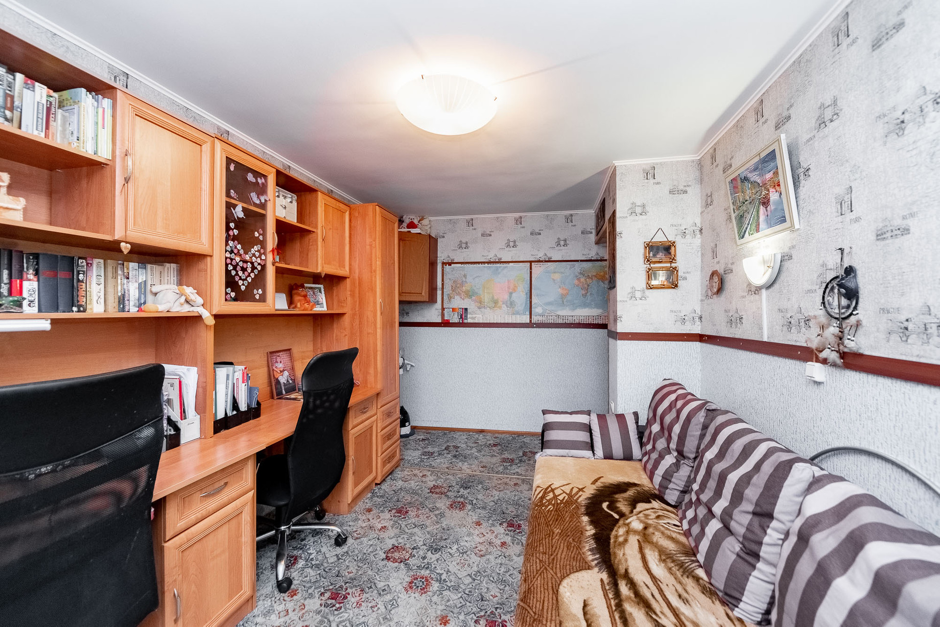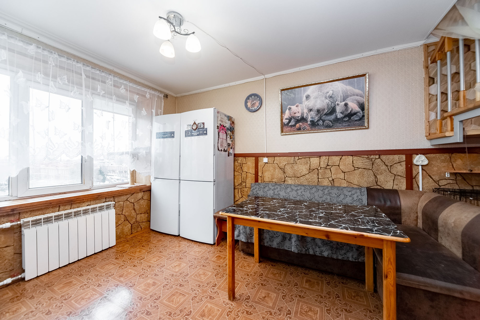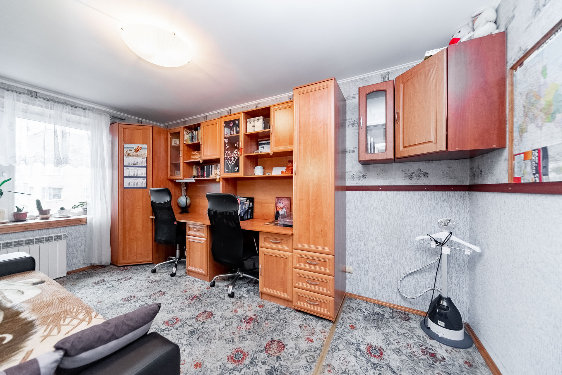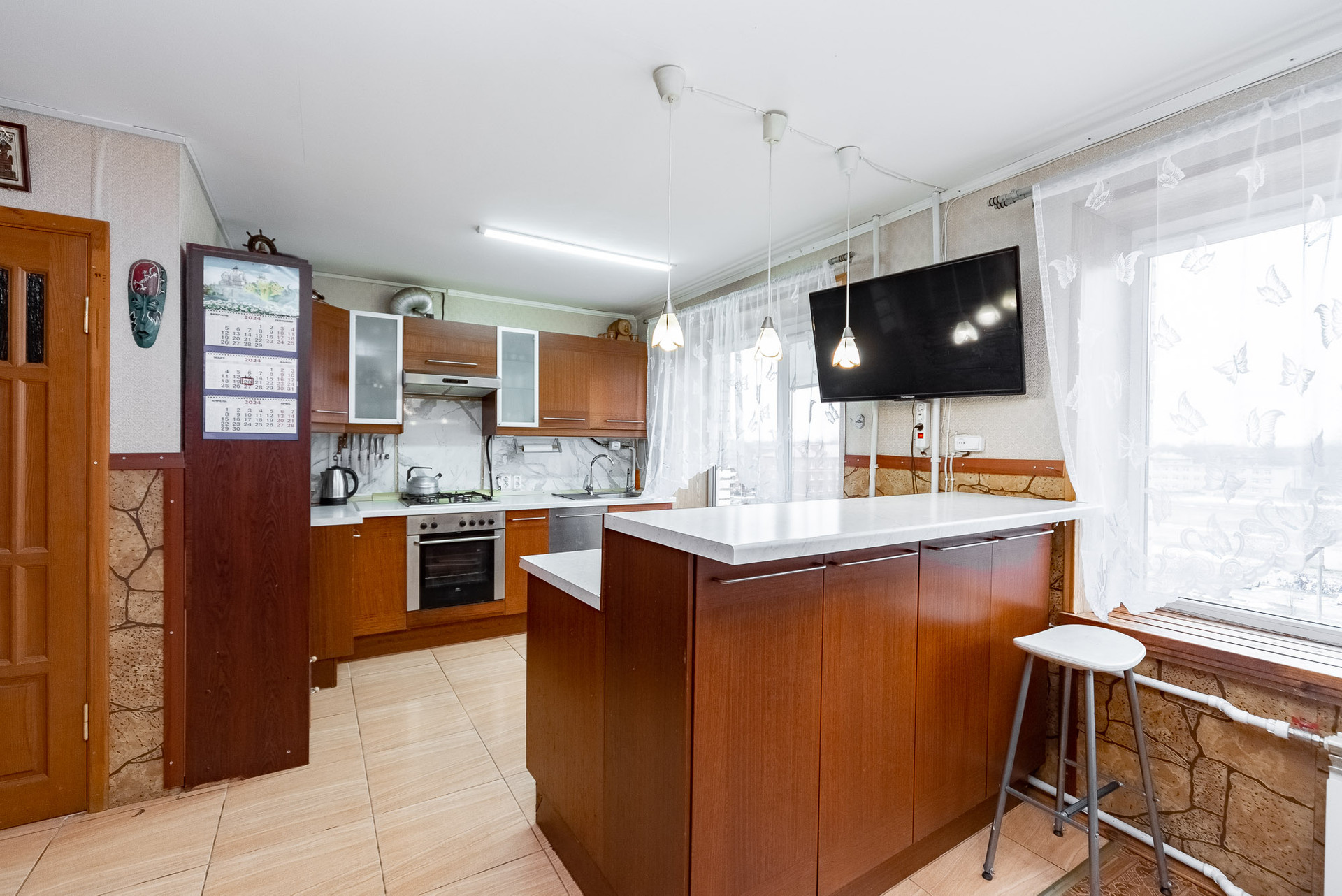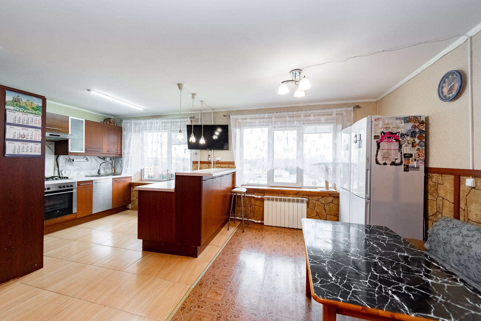 Квартира с косметическим ремонтом. По всей квартире установлены стеклопакеты, проведена шумоизоляция (стены, полы). Поставлены фильтры для воды и установлены тёплые полы в кухонной зоне, и в ванных комнатах.