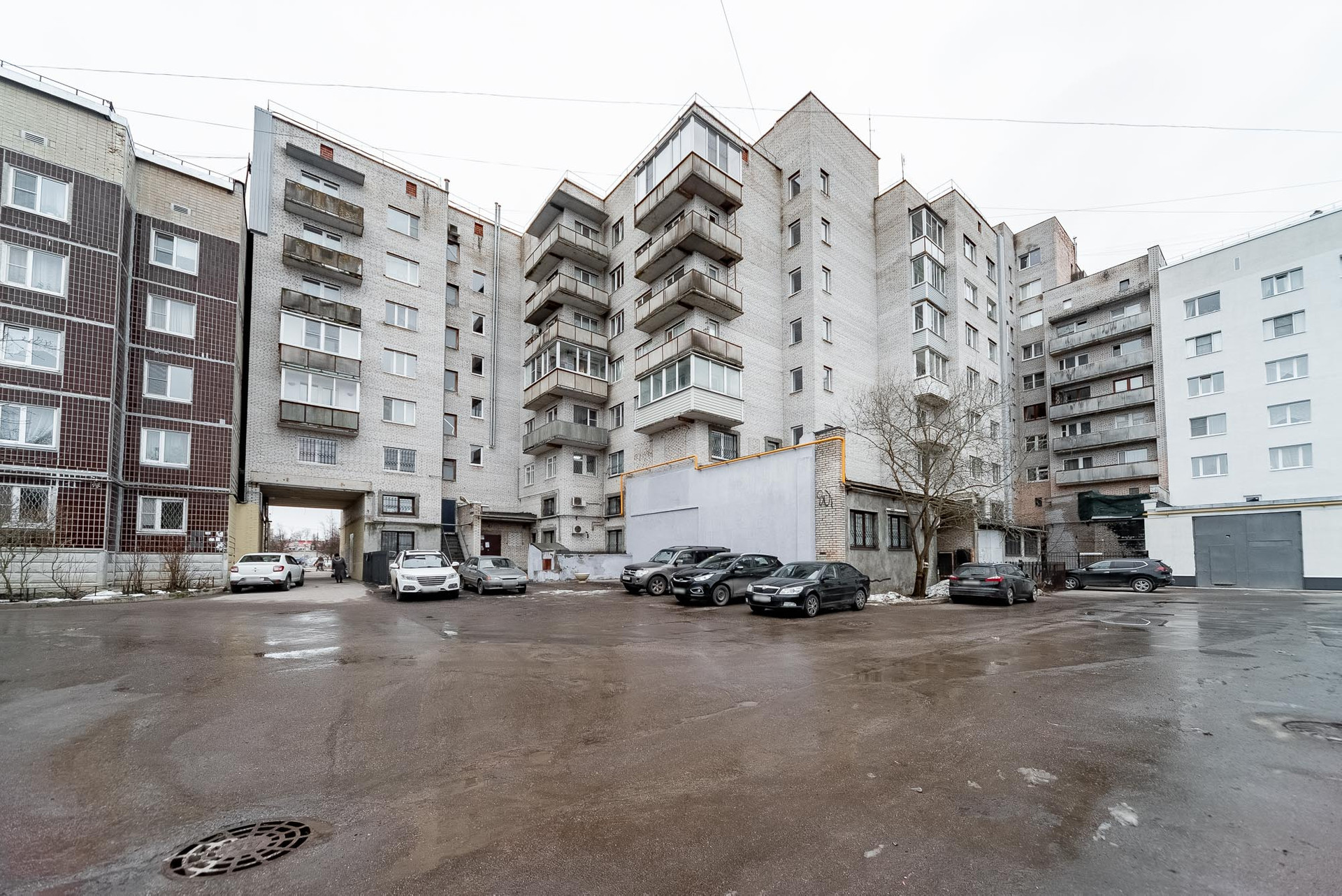 Рядом с домом большая парковка для машин.