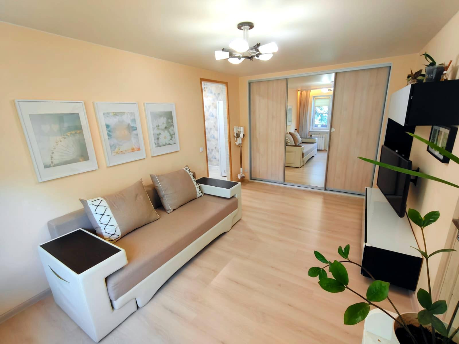 Вашему внимаю предлагается уютная, светлая, теплая чистая квартира в центре города Гатчина. Прекрасно подойдет для тех кто не хочет сразу покупки вкладываться в дорогостоящий ремонт. В квартире он уже произведен: замена электропроводки установлен 2х тарифный эл.счетчик, заменен трубопровод, сливные трубы, батареи отопления, газовая колонка, установлена качественная сантехника, натяжные потолки. Все окна стекло-пластиковые со встроенными детскими замками. Спальня условно разделена на 3 зоны, каждая из которых имеет свое освещение и розетки. Вместительная, светлая гардеробная, зона для сна(с индивидуальными бра) и просторная рабочая зона под окном. В гостиной встроенный шкаф-купе с 3 дверьми( используется как кладовая и место под морозильную камеру, установлены стелажи и полки).Большое зеркало заклеено бронирующей пленкой. Дополнительное "атмосферное" освещение под окном. Светлая кухня с функциональной мебелью, встроенный шкаф в коридоре при входе на кухню. Акриловая ванна riho. европейские смесители. Входная группа оборудована двумя дверьми: наружная-надежная дверь Эльбор, внутренняя -межкомнатная,деревянная9для тепло-шумоизоляции). Балкон не застекленный. Подъезд тихий, все соседи семейные. Во дворе детская площадка, всегда есть парковочные места для автомобилей. Рядом с домом все необходимые магазины. Удобное расположение дома: школы, детские сады, поликлиники, парки все в пешей доступности. Остановка автобуса до Санкт-Петербурга в 5 минутах пешком, до ж/д Татьянино - 10 минут. ВП, в собственности более 5 лет, долгов и обременений нет, показы по договоренности.