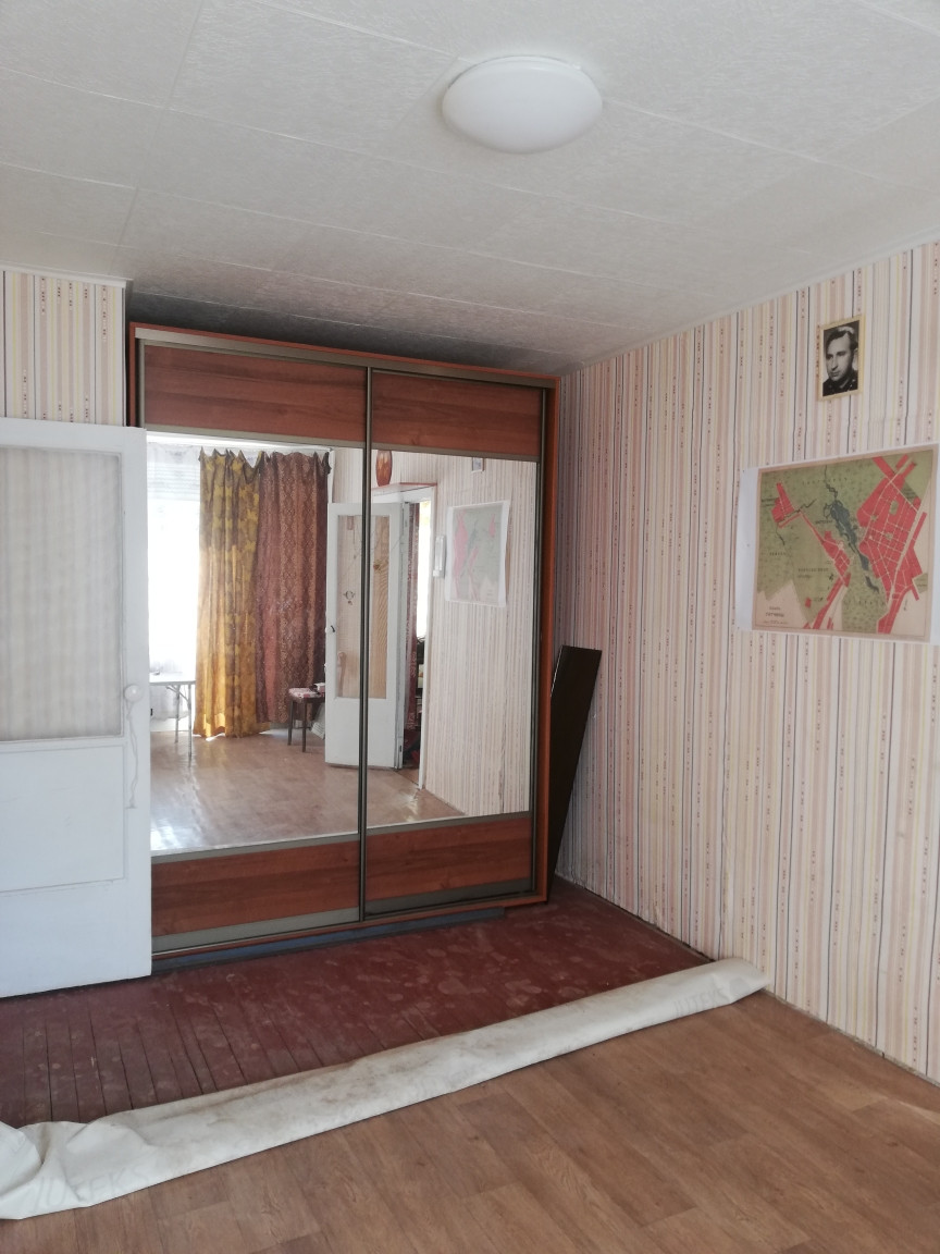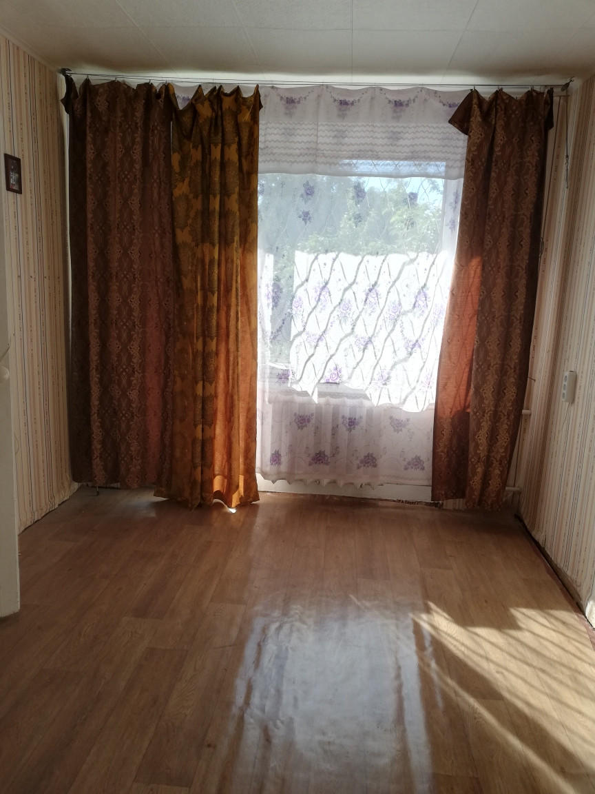 Квартира светлая и теплая. Без ремонта, установлены металлопластиковые окна. Есть балкон, окна во двор. Комнаты смежно-изолированные 15 кв.м  + 11, 5 кв.м. Санузел раздельный, ванная отдельная, для горячей воды установлен бойлер. Есть две кладовки. Есть возможность сделать комнаты изолированными.