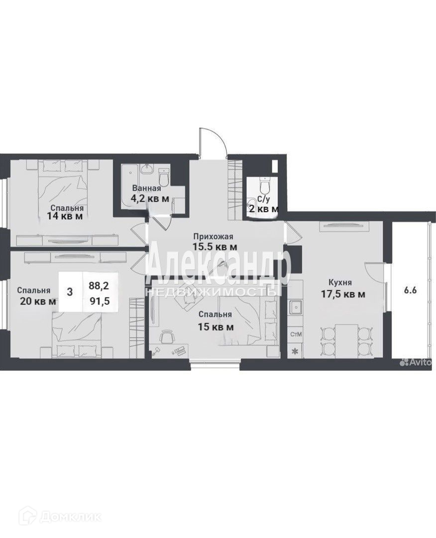 Общая площадь 91.5 м2