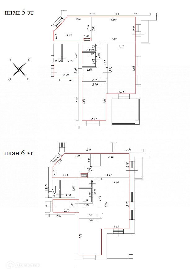 Квартира на 5-6 этажах, вход в квартиру возможен в настоящее время с каждого этажа, но при желании можно оставить один вход. Все площади помещений в прикрепленной таблице.