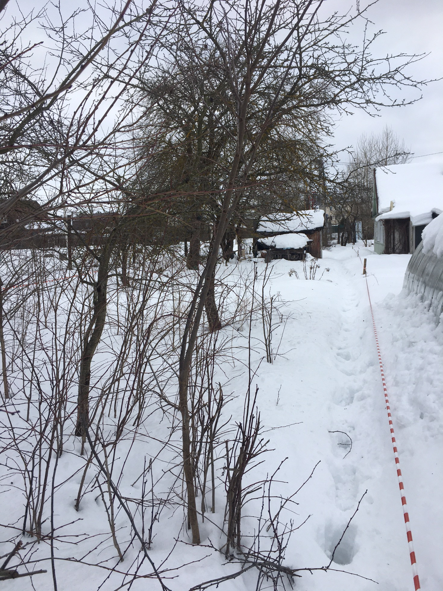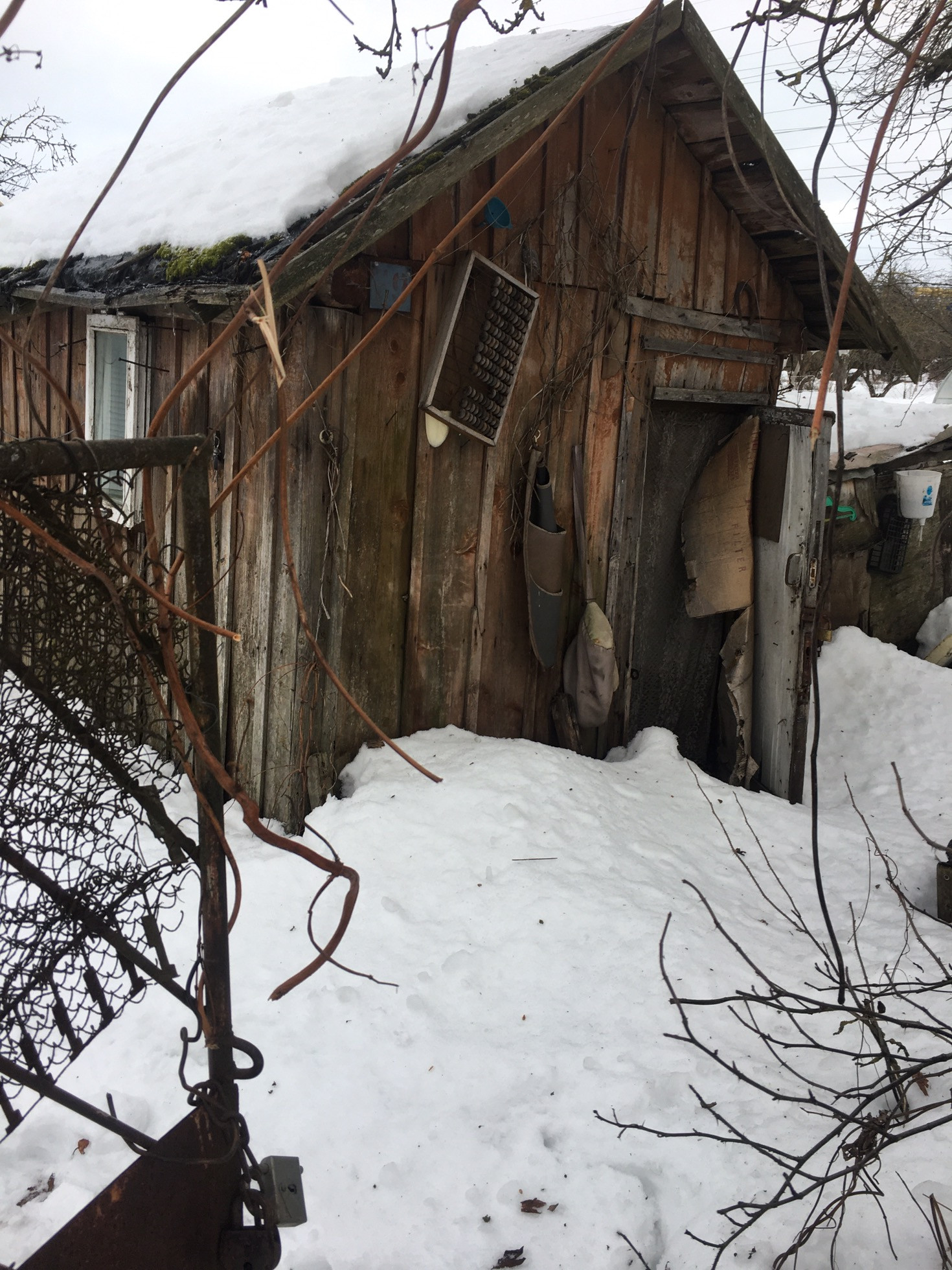 На участке сарай (под снос). Участок долгое время не обрабатывался, зарос дичками. Есть несколько плодоносящих деревьев и кустарников (яблони, сливы и жимолость). Со слов бывшей хозяйки есть колодец (в каком он состоянии не знаю).