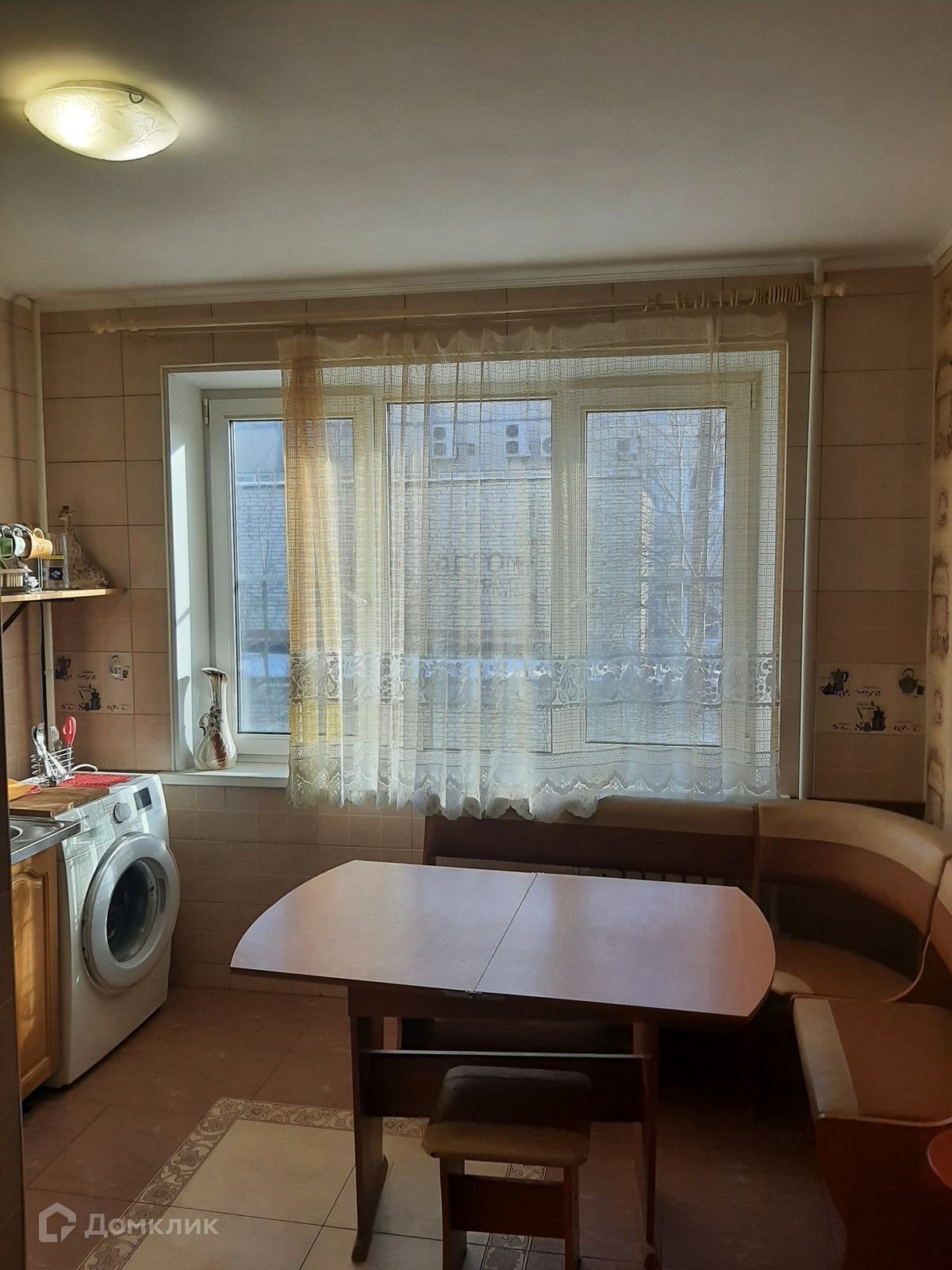 Кухня просторная, с большим окном. Полностью оборудована! Х-к 2ух камерный 180 см, газовая плита и вытяжка Гефест, стиральная машина и микроволновка Самсунг, мультиварка, эл.чайник. Посуда.