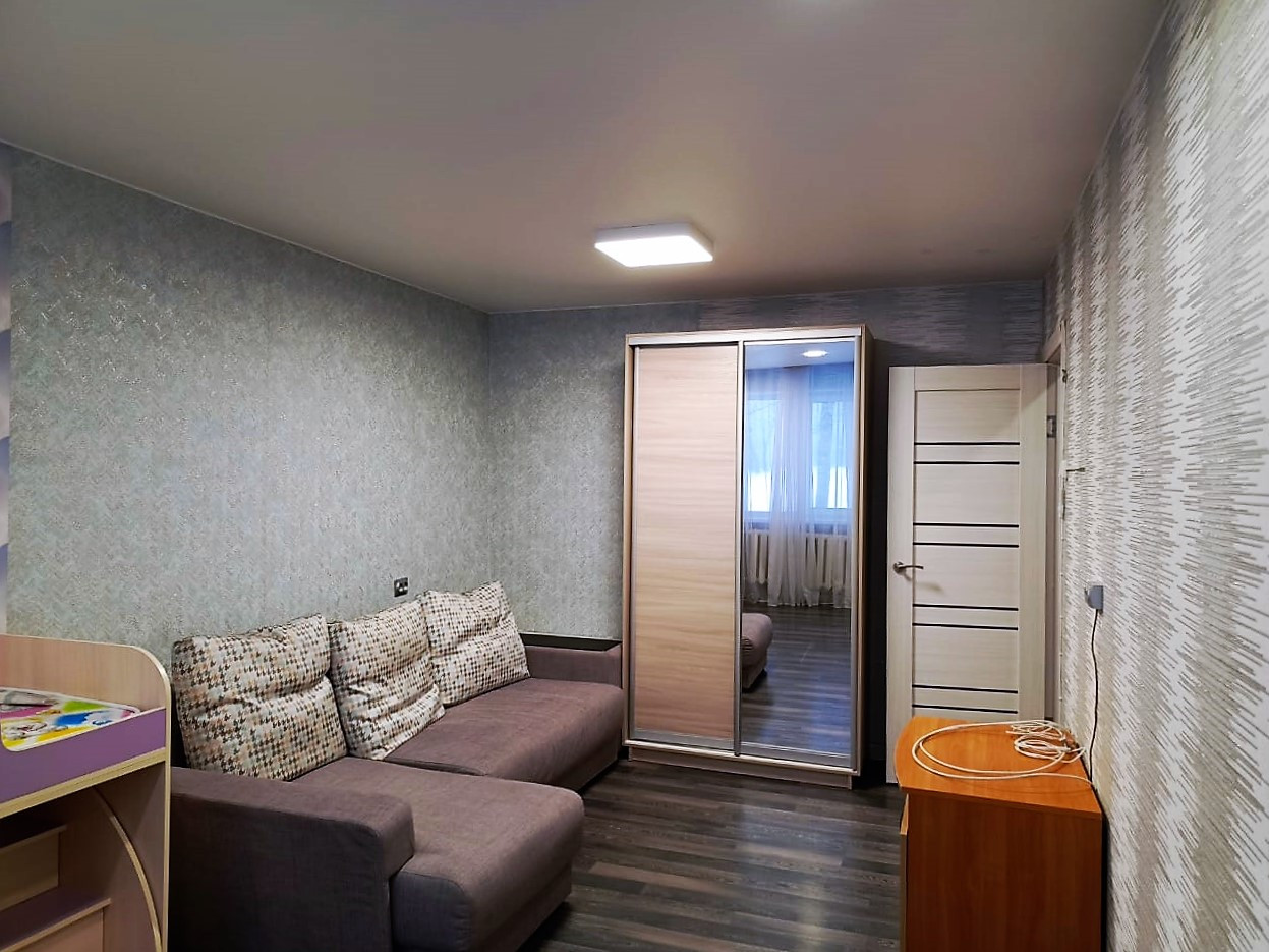 Общая площадь — 32 кв.м., комната — 17.5 кв.м., кухня — 5.5 кв.м., панель, 1/5 этаж, раздельный санузел. Хорошее месторасположение, рядом парк и вся инфраструктура.