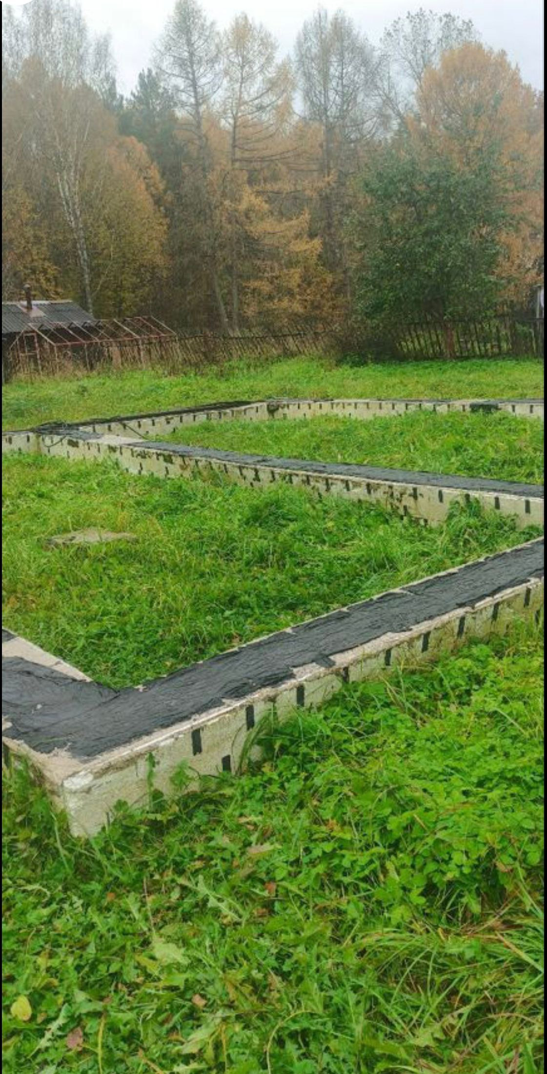 На участке имеется фундамент 9,5*9. Залит в 2020 году. Песчаная подушка 80см, бетон 1м высотой. Делали для себя, поэтому всё по совести.