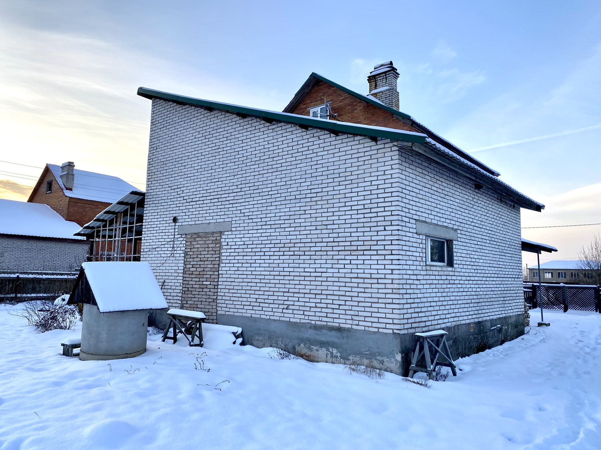 Двухэтажный кирпичный дом 2005 г.п, фактической площадью 174 кв.м, с водопроводом и канализацией. Вода центральная, канализация-септик. Электричество 15 КВт. Мощный блочный фундамент, кровля-металлочерепица, стеклопакеты. Отопление печь+электро конвекторы. Планировка первого этажа: прихожая, большой коридор, гостиная, зимняя веранда, кухня,  кладовка, техническое помещение, с/у, гараж. На втором этаже расположено 5 спален и с/у (туалет+ванная).