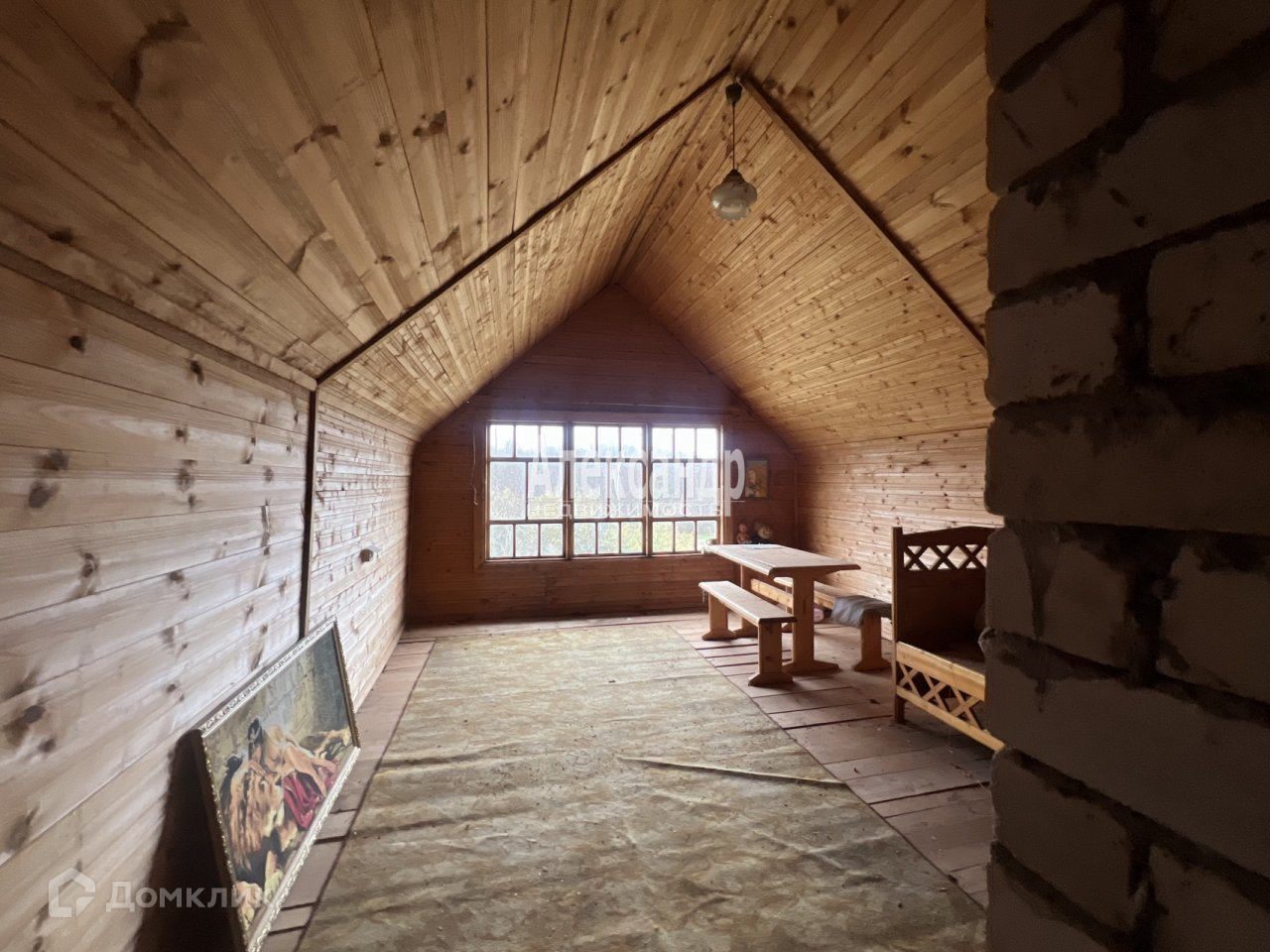 Большой жилой дом 8*8 стоит на ленточном фундаменте, сделан из бревна, крыша покрыта шифером. На первом этаже расположилась веранда, кухня и комнаты размером 18 кв.м. и 10 кв.м., на втором этаже есть детская комната 9 кв.м. и большая 25 кв.м. Дом на печном отоплении, утеплен снаружи, окна деревянные, есть подключение к телевизионной тарелке и интернету. На участке есть баня (здание перенесли), колодец, гараж, беседка и летний домик. Участок разработан, растут плодовые деревья, часть земли культивируется соседом возможно сразу использовать для посадки огорода. Достоянием участка является многовековой дуб, украшающий проезд к дому.
