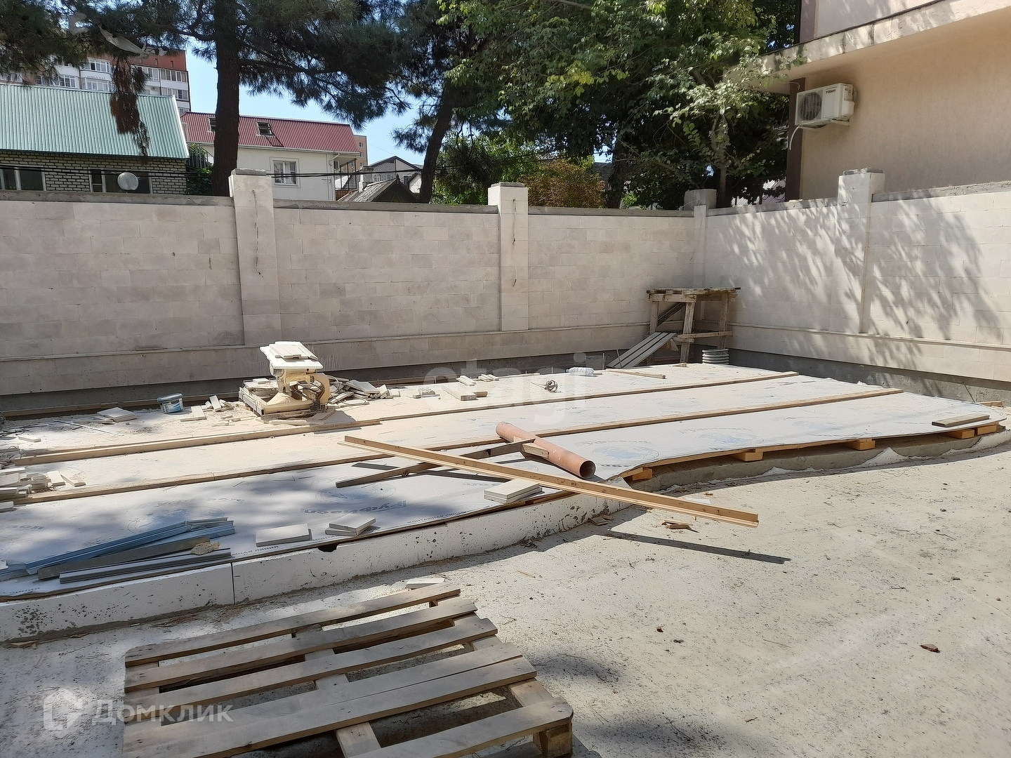 Отдельного внимания стоит удостоить композитный бассейн премиум сегмента (фирмы Limpid pools). Размер бассейна 7,5 на 3,8 метра. В бассейне предусмотрен подогрев воды. Так же к бассейну проложены коммуникации для подключения любого дополнительного оборудования.