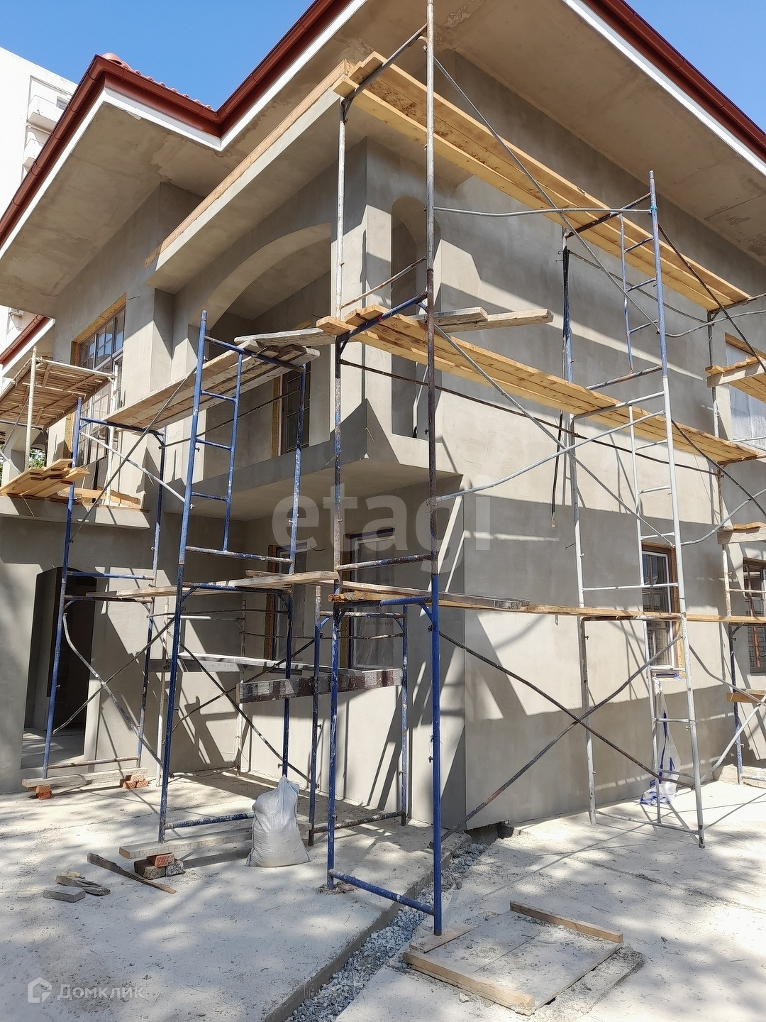 Дом введён в эксплуатацию. На данный момент ведутся работы по благоустройству фасада дома и участка.