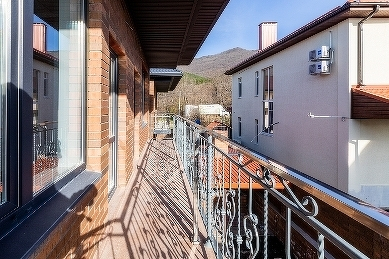 - 3 комнаты, одна большая 25 кв.м. с витражными окнами, две комнаты по 18 кв.м., из каждой комнаты есть выход на балкон, ванная комната 4,5 кв.м, также на втором этаже есть отдельный балкон расположенный рядом со спальней хозяев дома. С балкона открывается великолепный вид на Бухту Геленджика, видно море, горы, весь город как на ладони.