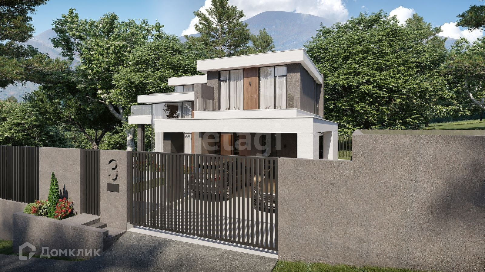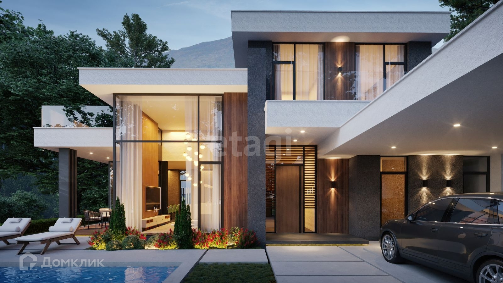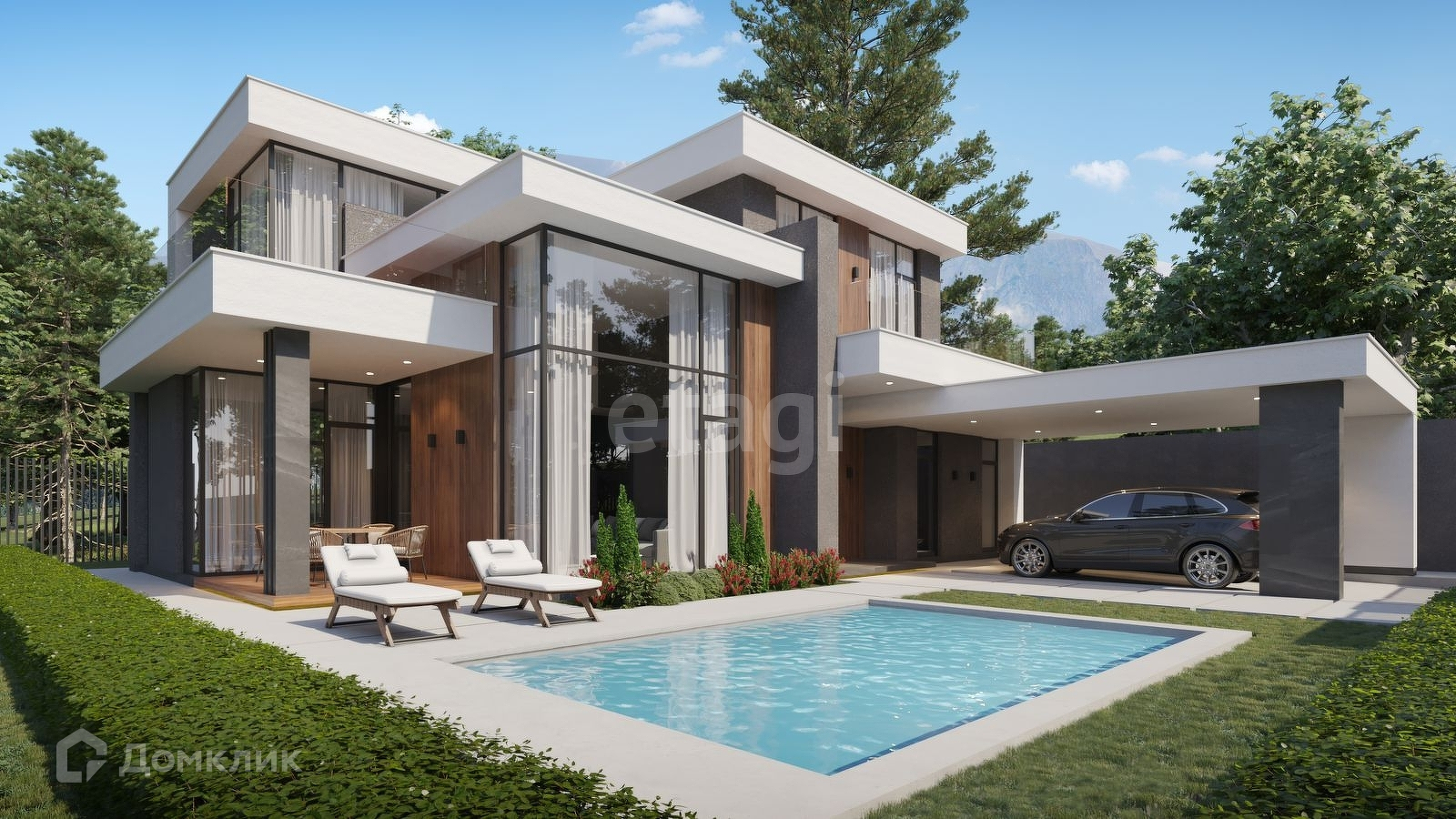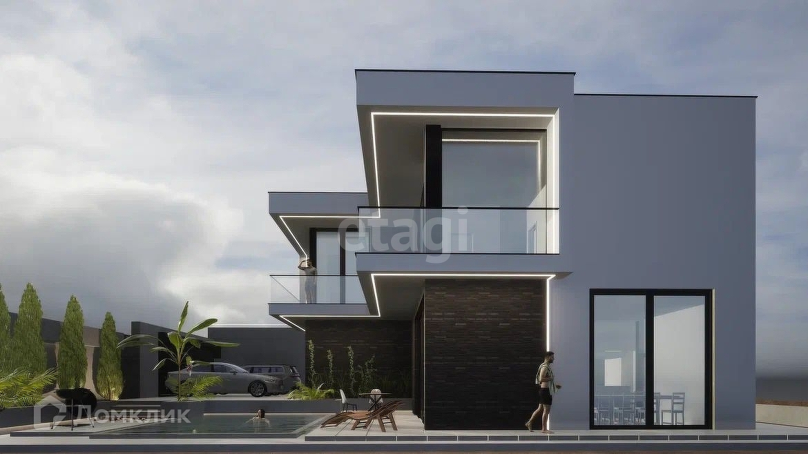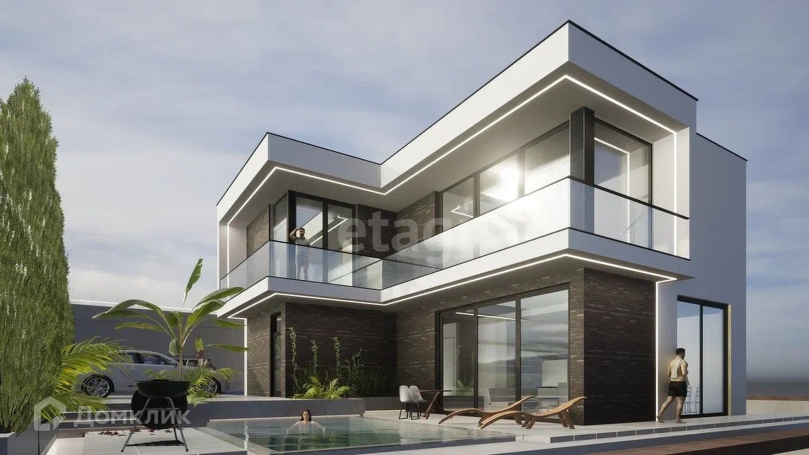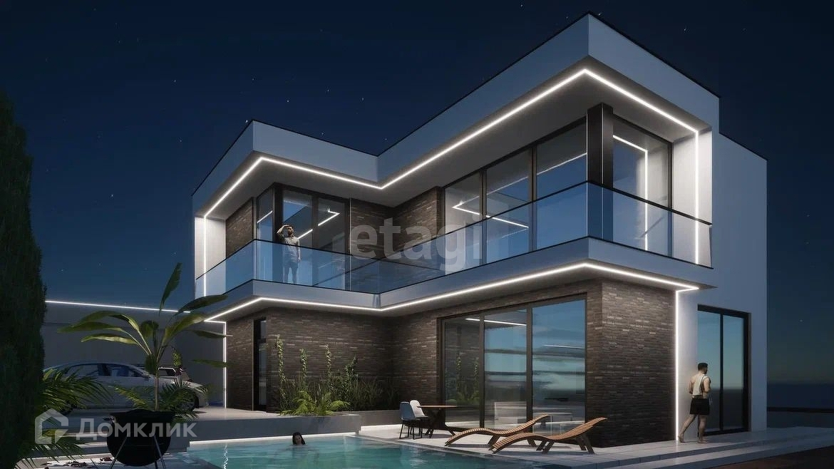 Вилла выполнена в современном стиле.