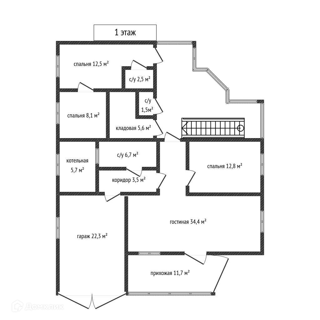 1 этаж площадью 165 м2 – для проживания хозяев, оборудован теплыми полами. Отопительный 2-контурный газовый итальянский котел и бойлер 200 л для горячей воды располагаются в отдельном помещении.