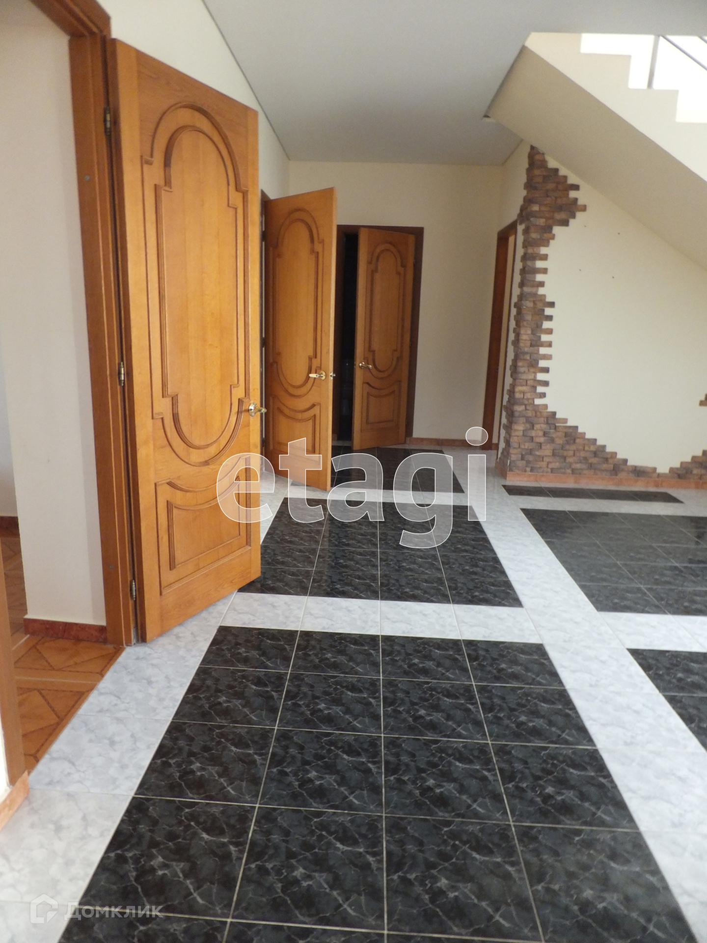 •    Дом кирпичный в настоящее время облицован под короед