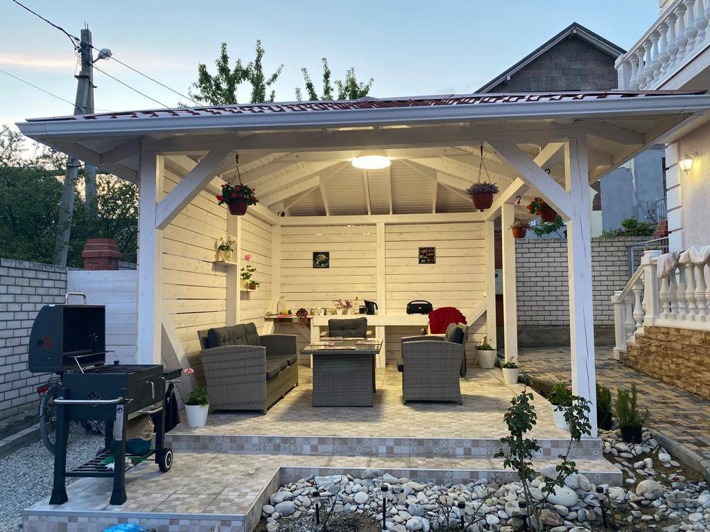 Территория дома грамотно спланирована и облагорожена. Перед домом расположена большая зона патио. На заднем дворе зона отдыха с фруктовым садом (черешня, яблони, груша, виноград)