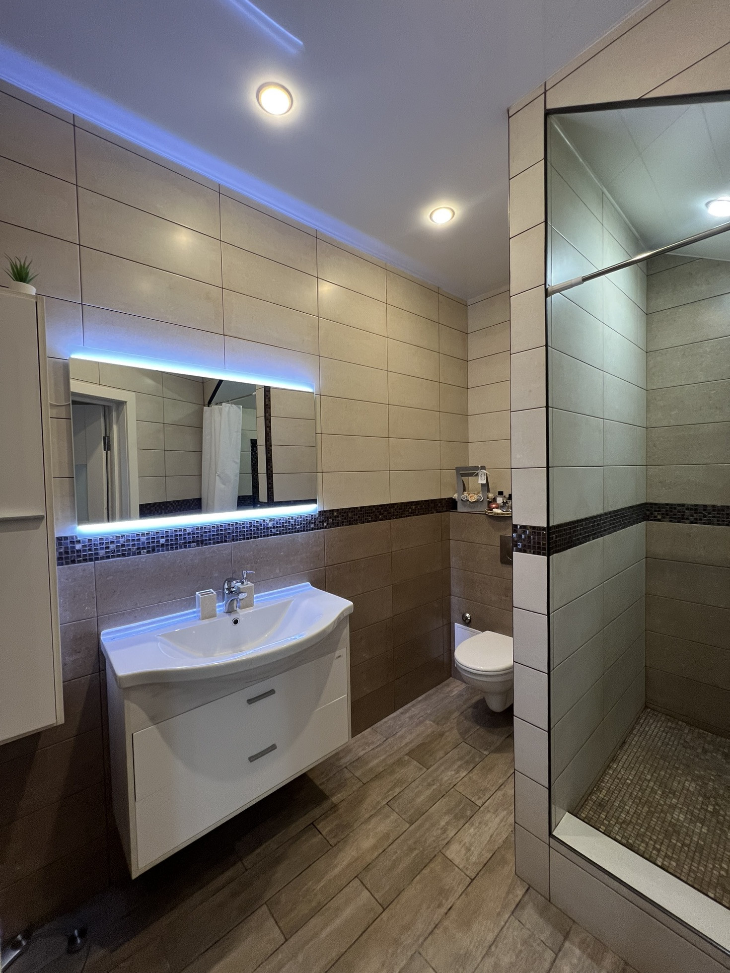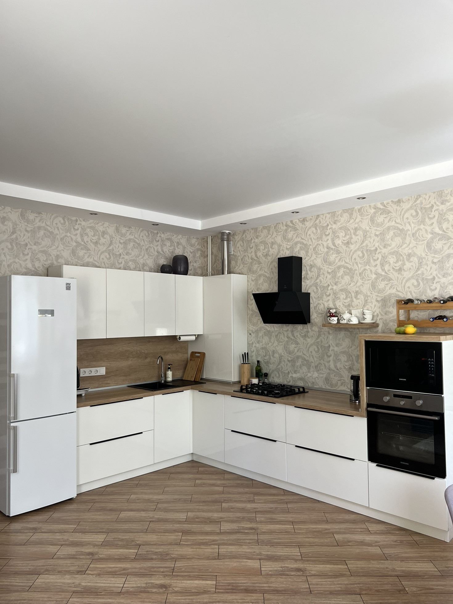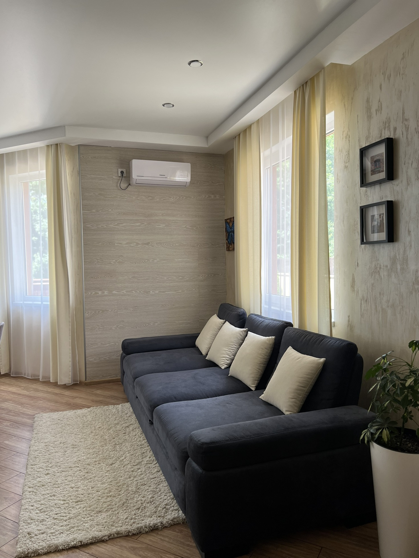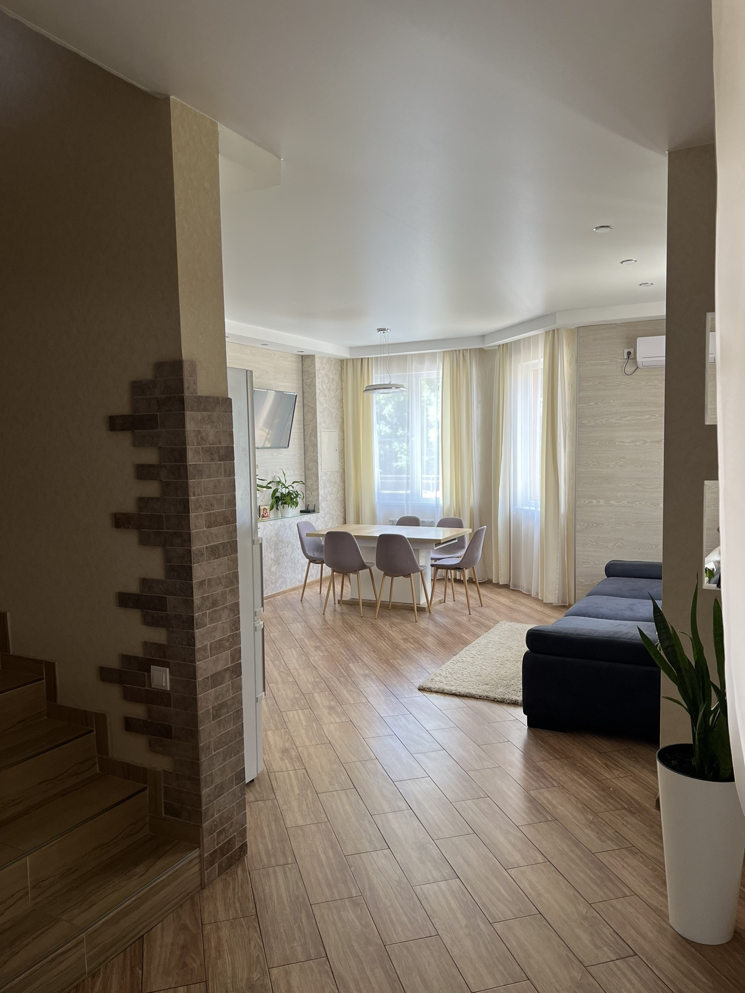 В доме: кухня-гостиная, три спальни, два санузла. В каждой спальне гардеробная. До с эксплуатируемой террасой.