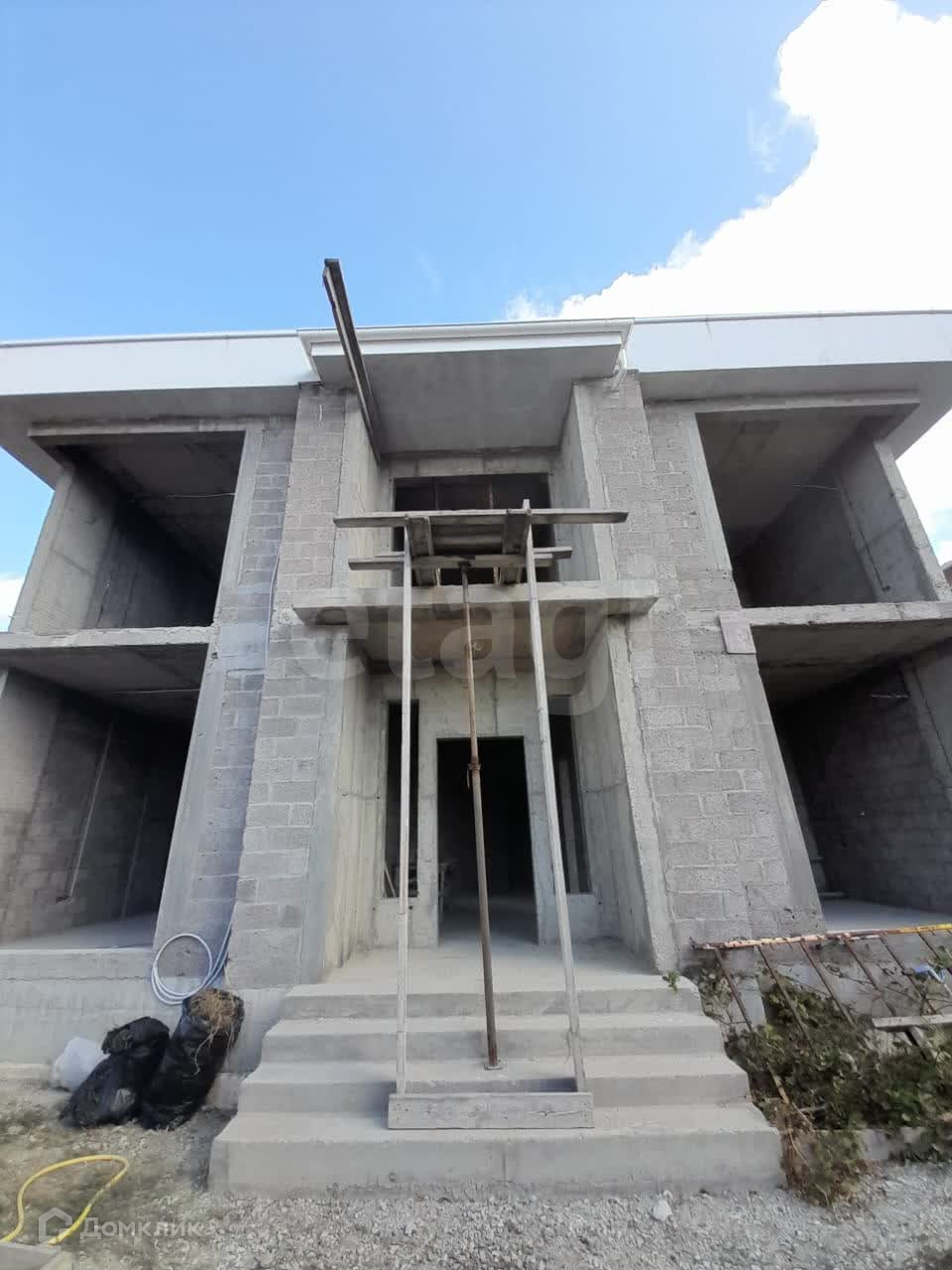 Дом запроектирован в современном стиле Хай Тек. Выведен хороший ростверк забора, выполнено благоустройство входной группы на участок. Основные строительно- монтажные работы выполнены, остались только фасадные работы, установка окон и внутренняя отделка.