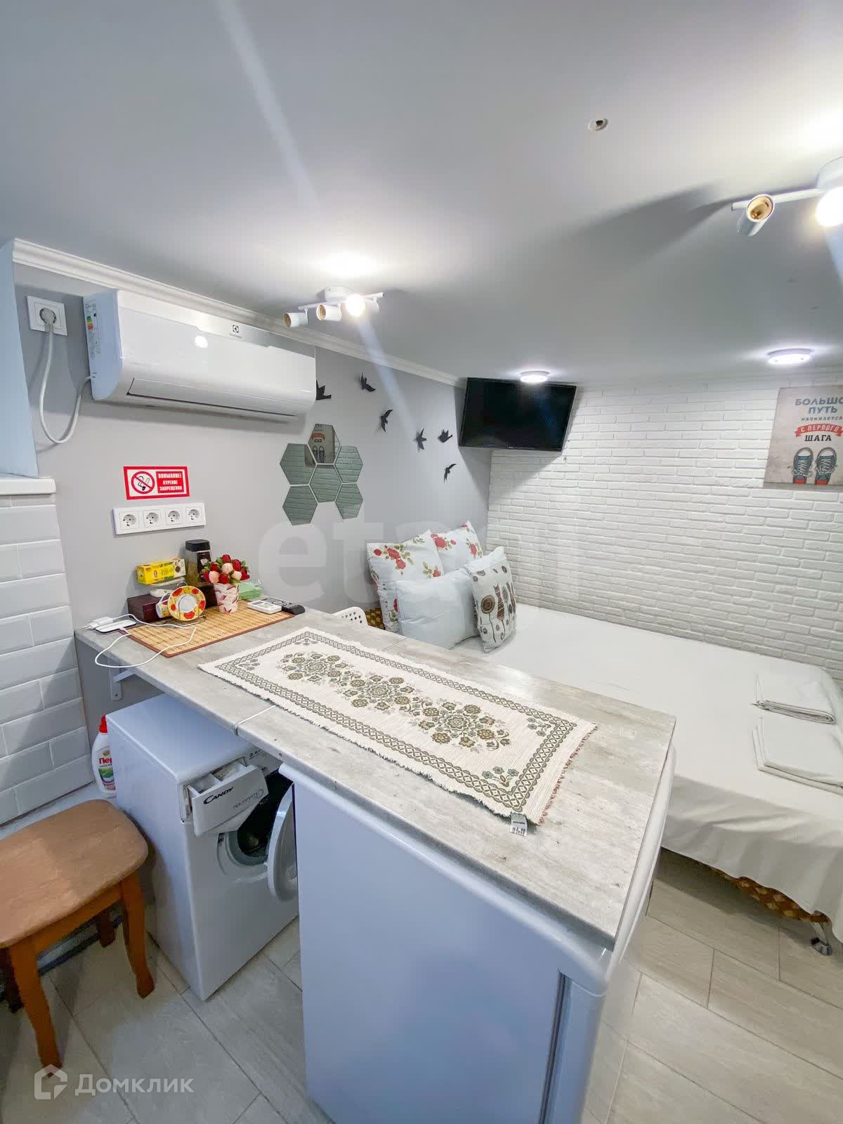 Вашему вниманию предлагается уютная квартира-студия на цокольном этаже многоквартирного дома. Это жилое помещение с возможностью оформления прописки. В квартире установлена сплит-система, которая обеспечивает тепло в зимний период. Также выполнена новая проводка и установлен обратный клапан в канализации, что предотвращает затопление помещения. Квартира находится в собственности с 2014 года.