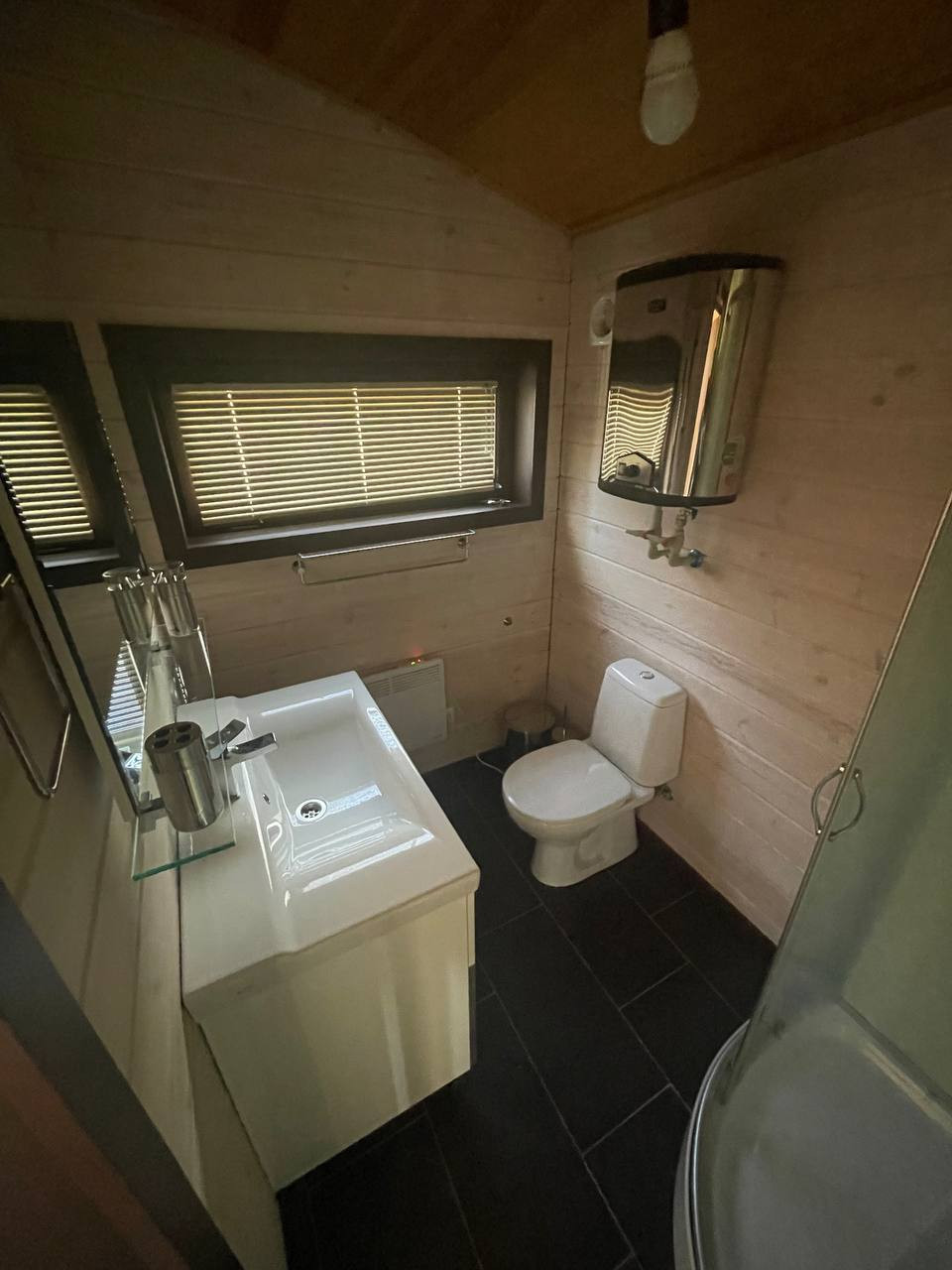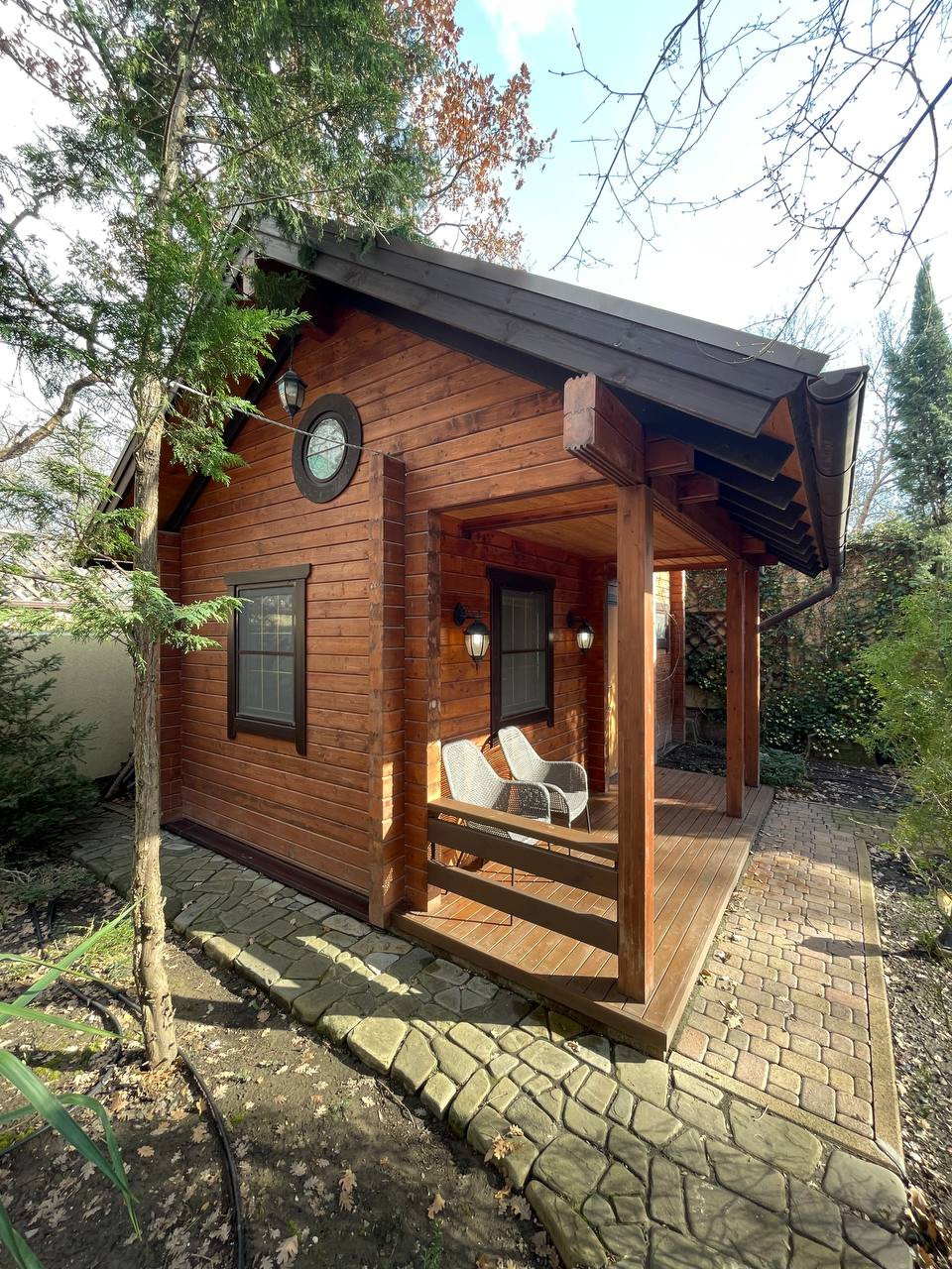 Три гостевых домика на участке, в идеальном состоянии, все новое, они не эксплуатировались с момента постройки. Внутри до сих пор пахнет ремонтом и новой мебелью. Одни из домиком оснащен мини кухней, террасой, чердачным помещением, два других по проще, но очень эргономичны и комфортны для проживания гостей, оснащены всей бытовой техникой и мебелью. Домики стоят обособленно от основного дома поэтому могут, при желании, сдаваться в аренду отдыхающим. Все домики оснащены дверьми фабрики UNION, итальянской сантехникой, мебелью и посудой IKEA. Вся техника производства японских и европейских брендов.