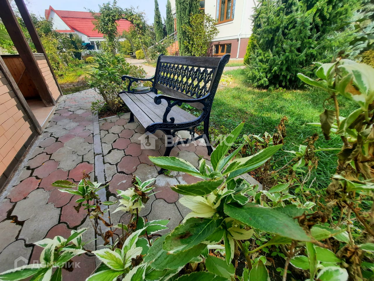 Во дворе уютная территория с различными декоративными растениями, грамотно продуманный ландшафтный дизайн, зона барбекю, зоны отдыха.