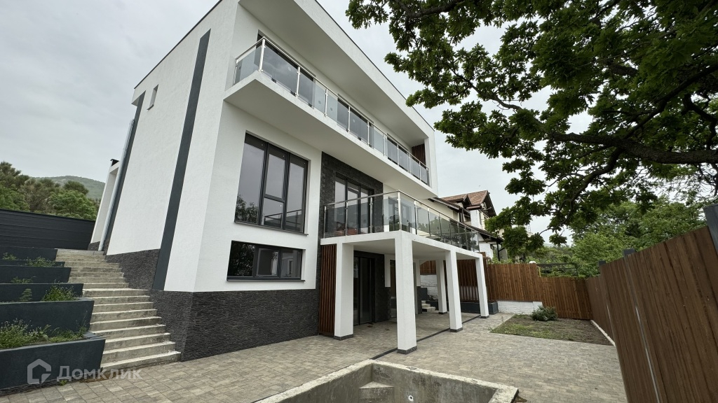 Арт. 64525252. Продается новый современный дом в стиле хай-тэк, расположенный в черте города, район Жилого комплекса "Лазурный-2"  с прямым видом на море из всех комнат. Дом 266 м2 на участке 4 сотки. Первый этаж с отдельным входом с выходом на бассейн - котельная и комната отдыха 40 м2, остекление в пол. Второй этаж кабаинет, кухня-гостиная 38 м2 и санузел, третий этаж две спальни и мастер спальня со свои санузлом плюс второй санузел на этаже. С каждой комнаты выход на лоджию 15 м2, на которой можно пить кофе и наслаждаться видом на Геленджикскую бухту!!!
