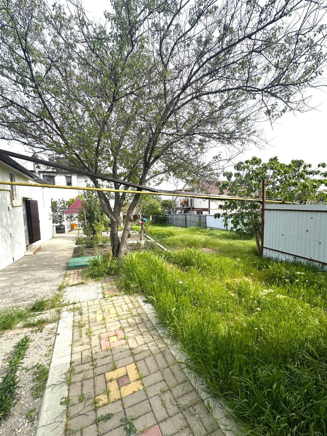 На территории есть летняя кухня, беседка, гараж, переоборудованный в дополнительную комнату, подвальное помещение, плодовые деревья (черешня, орех, абрикос, инжир, вишня, груша, яблоня,гранат, королек, смородина, малина). Отопление газовое, септик.