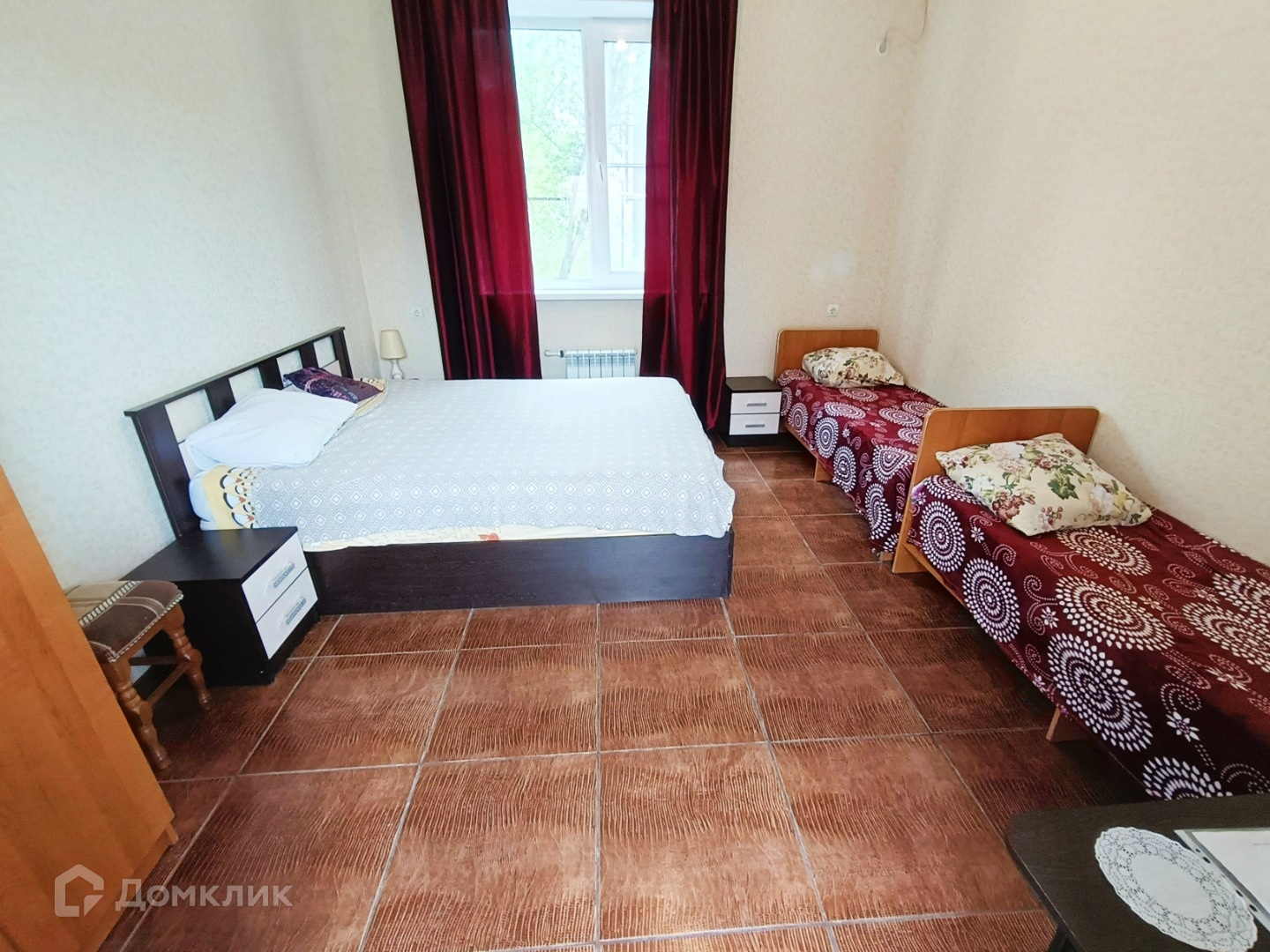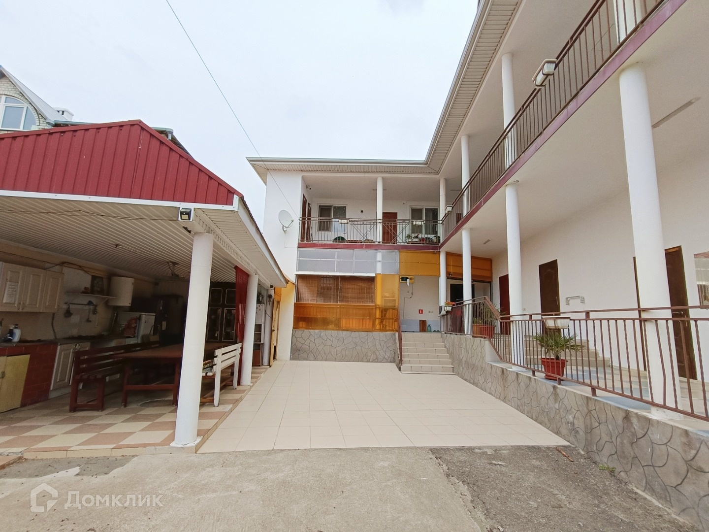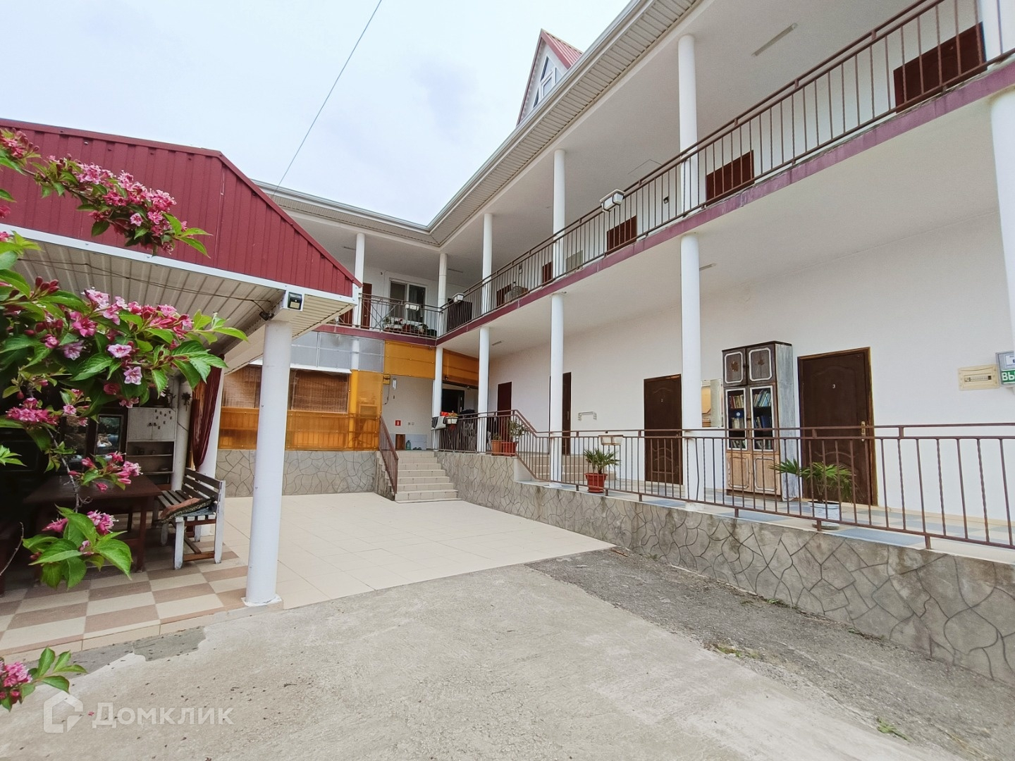 На первом этаже находится двухкомнатная квартира площадью 74 квадратных метра, котельная с двухконтурным котлом на отопление и бойлером на 200 литров для горячей воды, совмещенный санузел с душем и три гостевых четырехместных номера. На втором этаже расположена однокомнатная квартира, два раздельных санузла с раковинами, два одноместных номера, кухня и пять двухместных номеров. В каждом номере установлены кондиционер и телевизор для удобства гостей.
