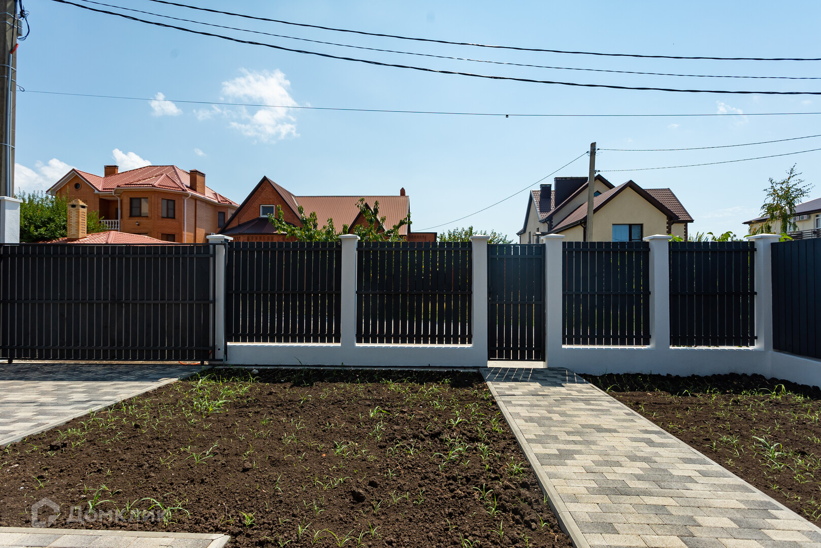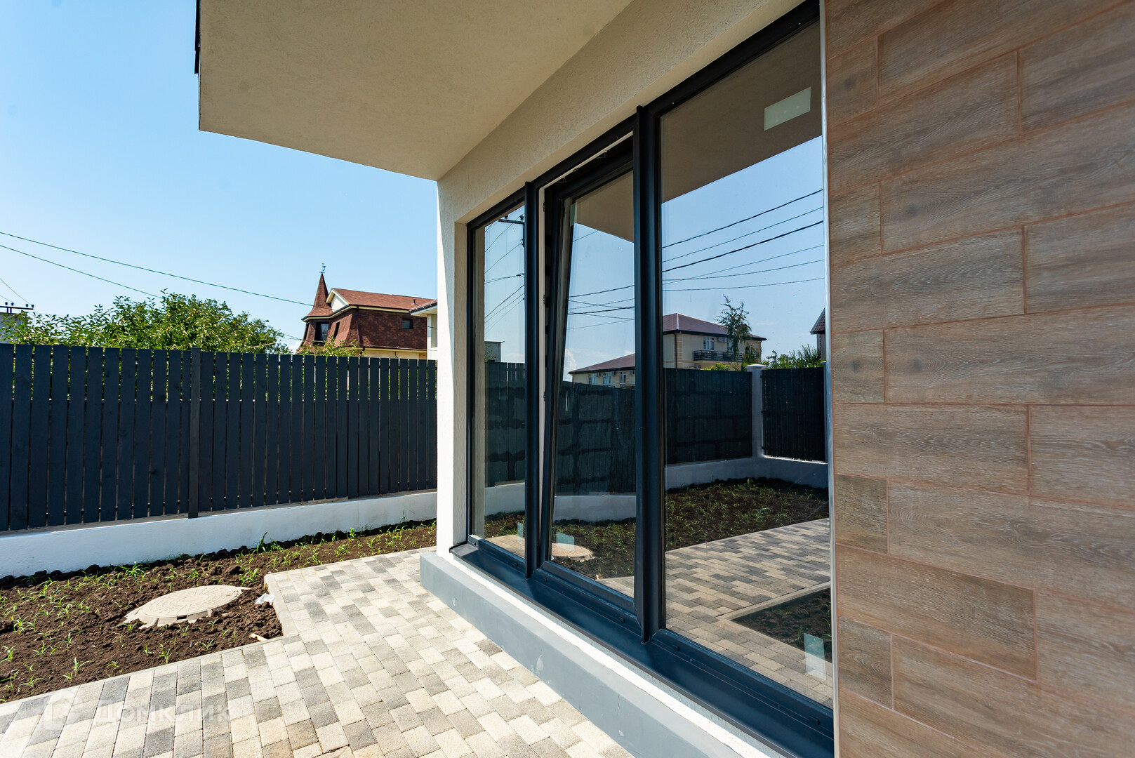 Во дворе положена тротуарная плитка.