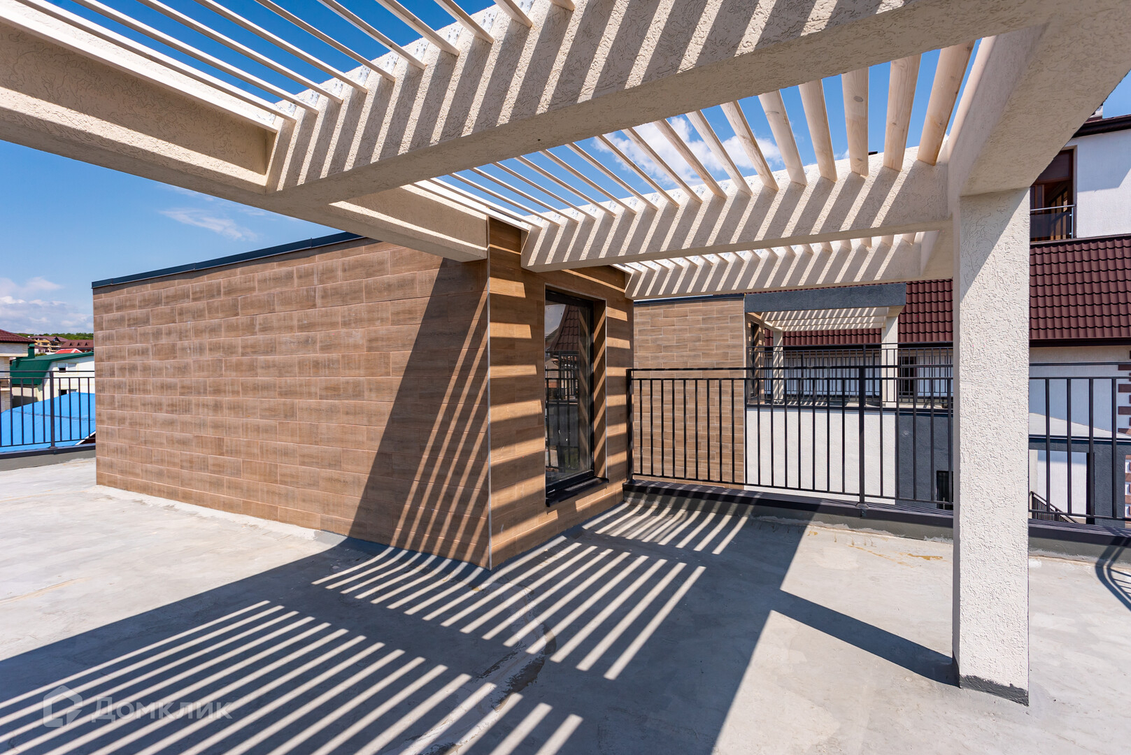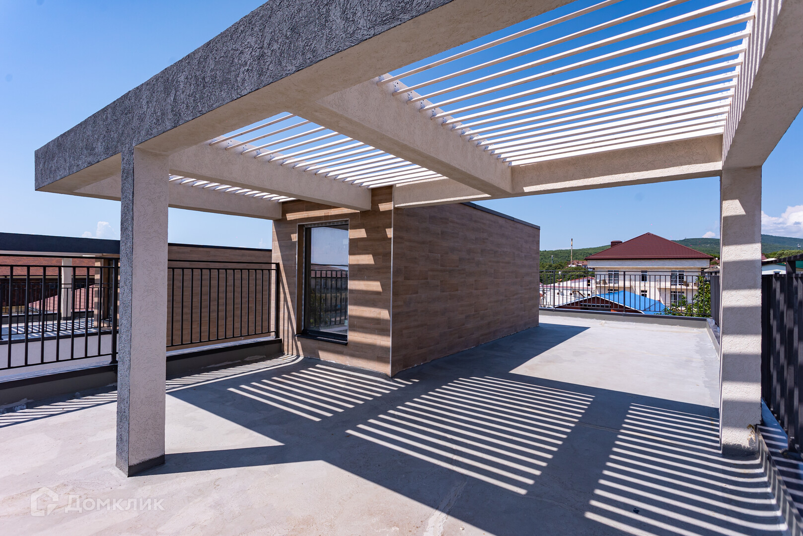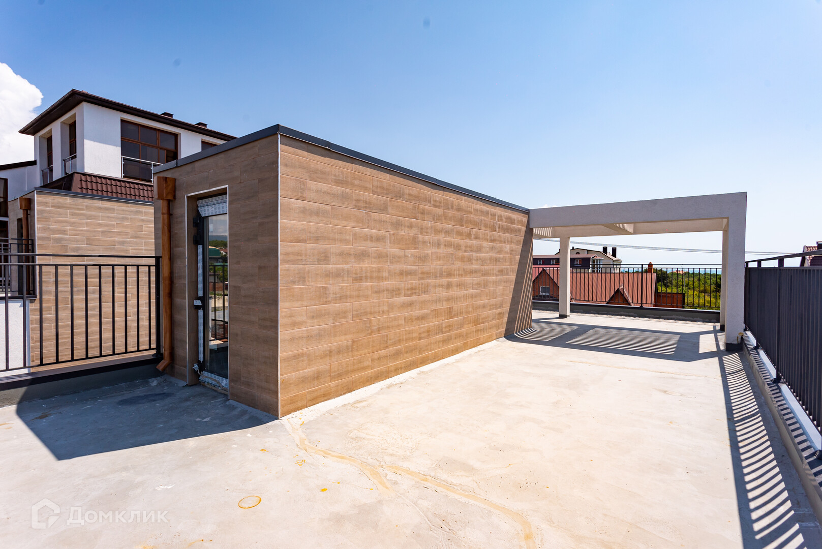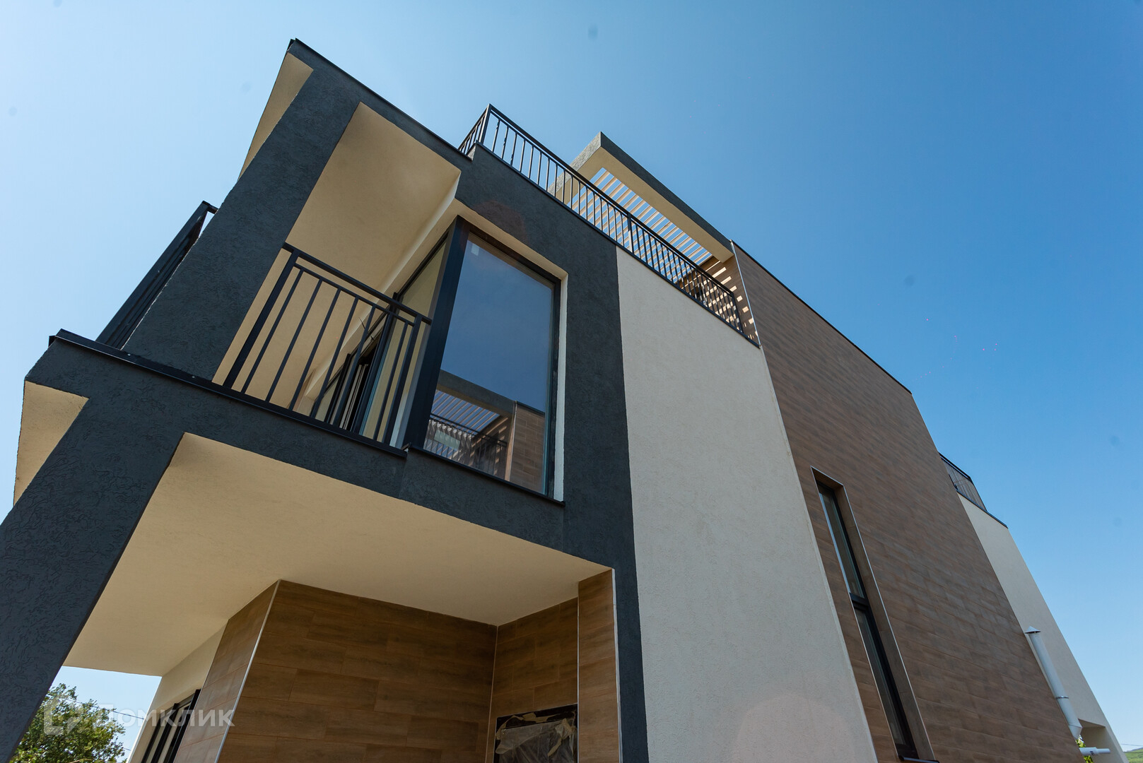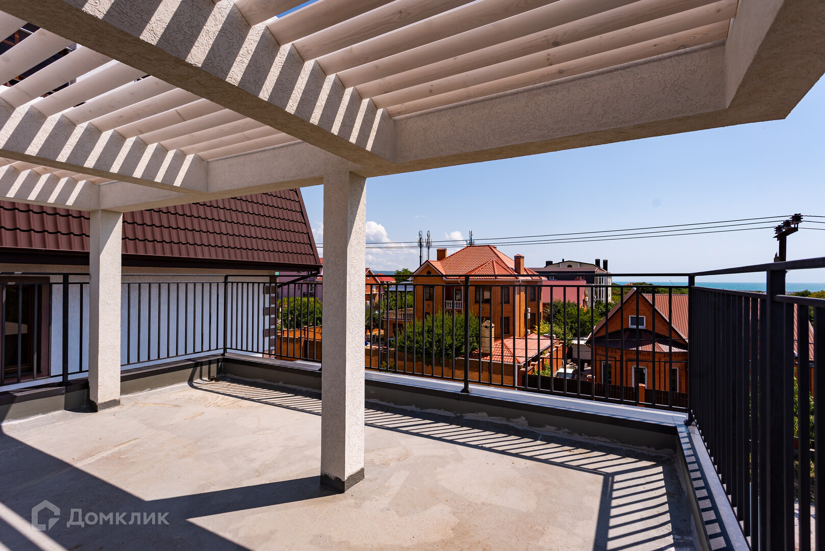 Состоит из двух этажей:1-й этаж: большая кухня-гостиная, комната и санузел, из кухни-гостиной предусмотрен удобный выход на террасу. 2-й этаж: 4 комнаты, 2 санузла, гардеробные, выход на большой балкон, с горизонтальной эксплуатируемой кровли открывается завораживающий вид на море.