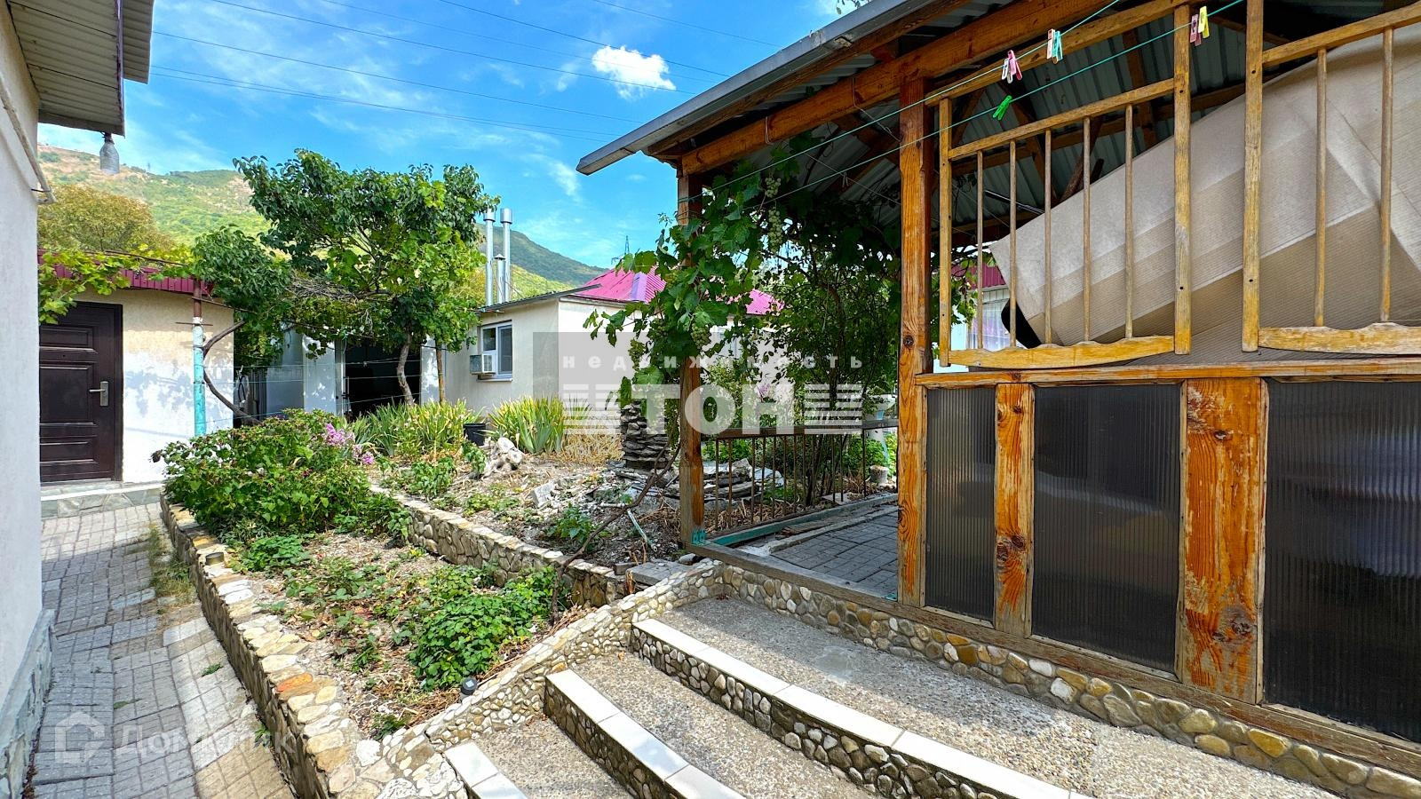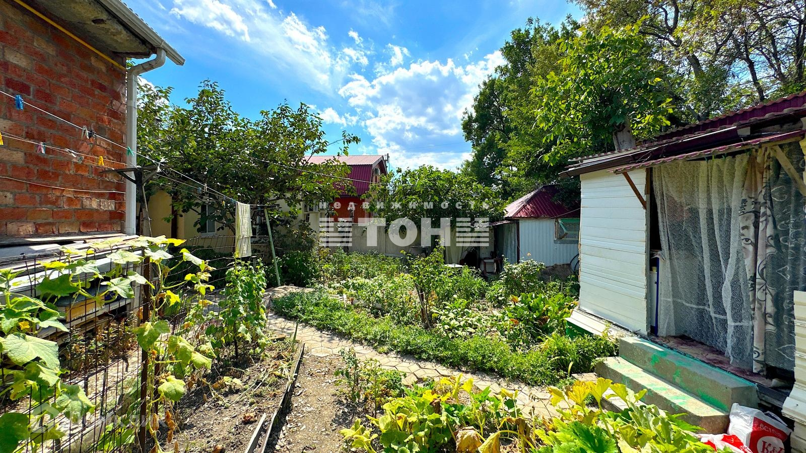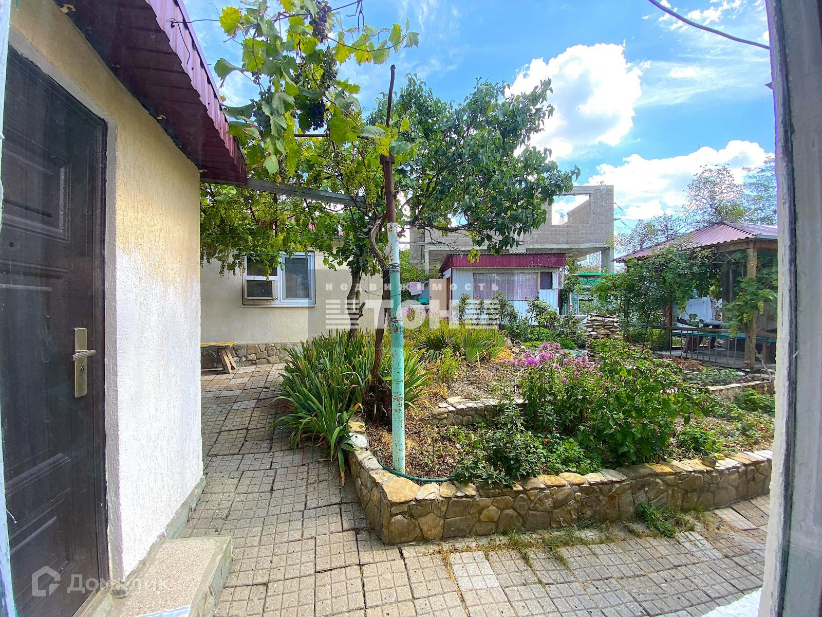 Двор большой и просторный, во дворе плодоносящие деревья, виноградники, беседки и много полезных летних построек.