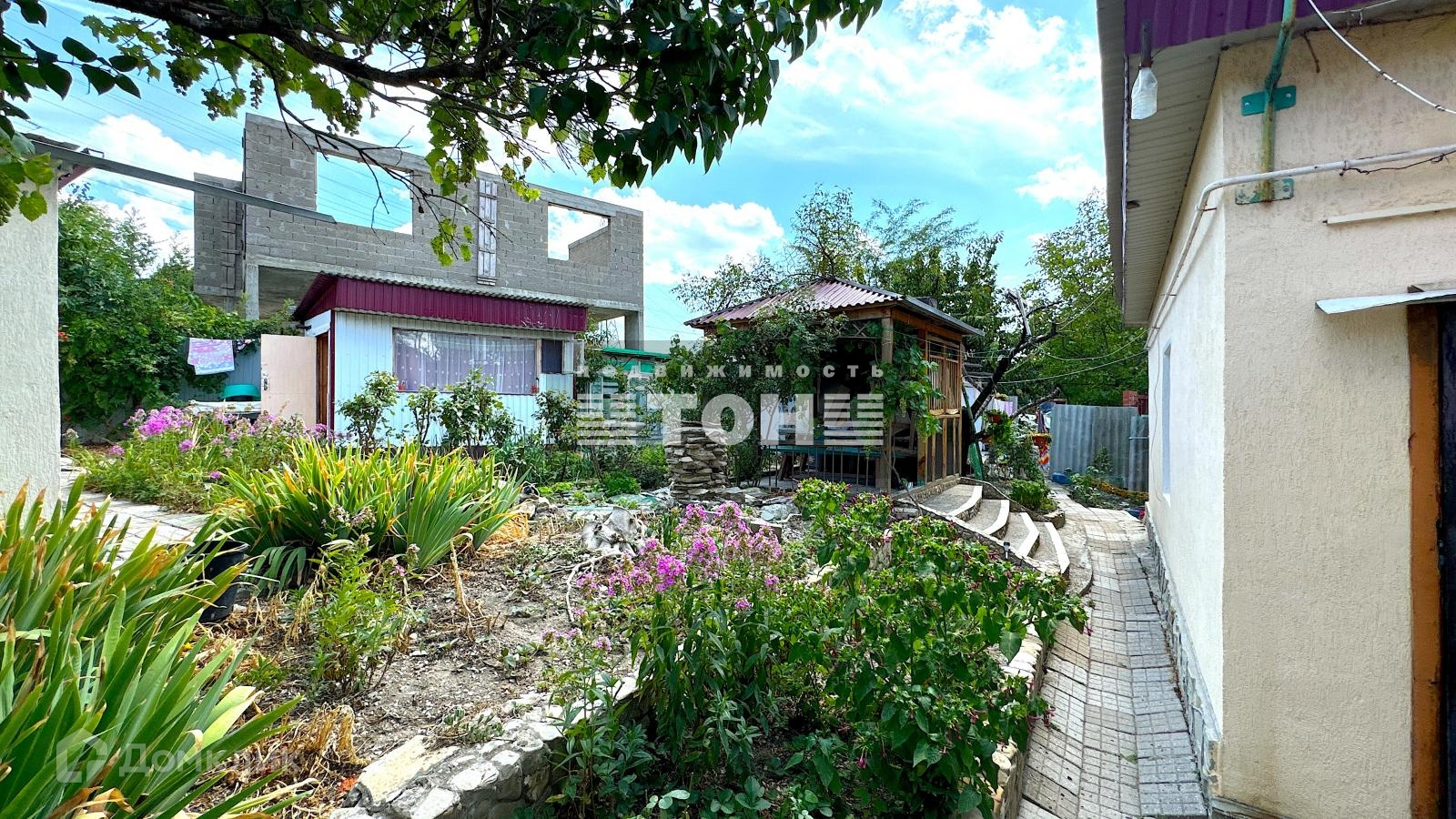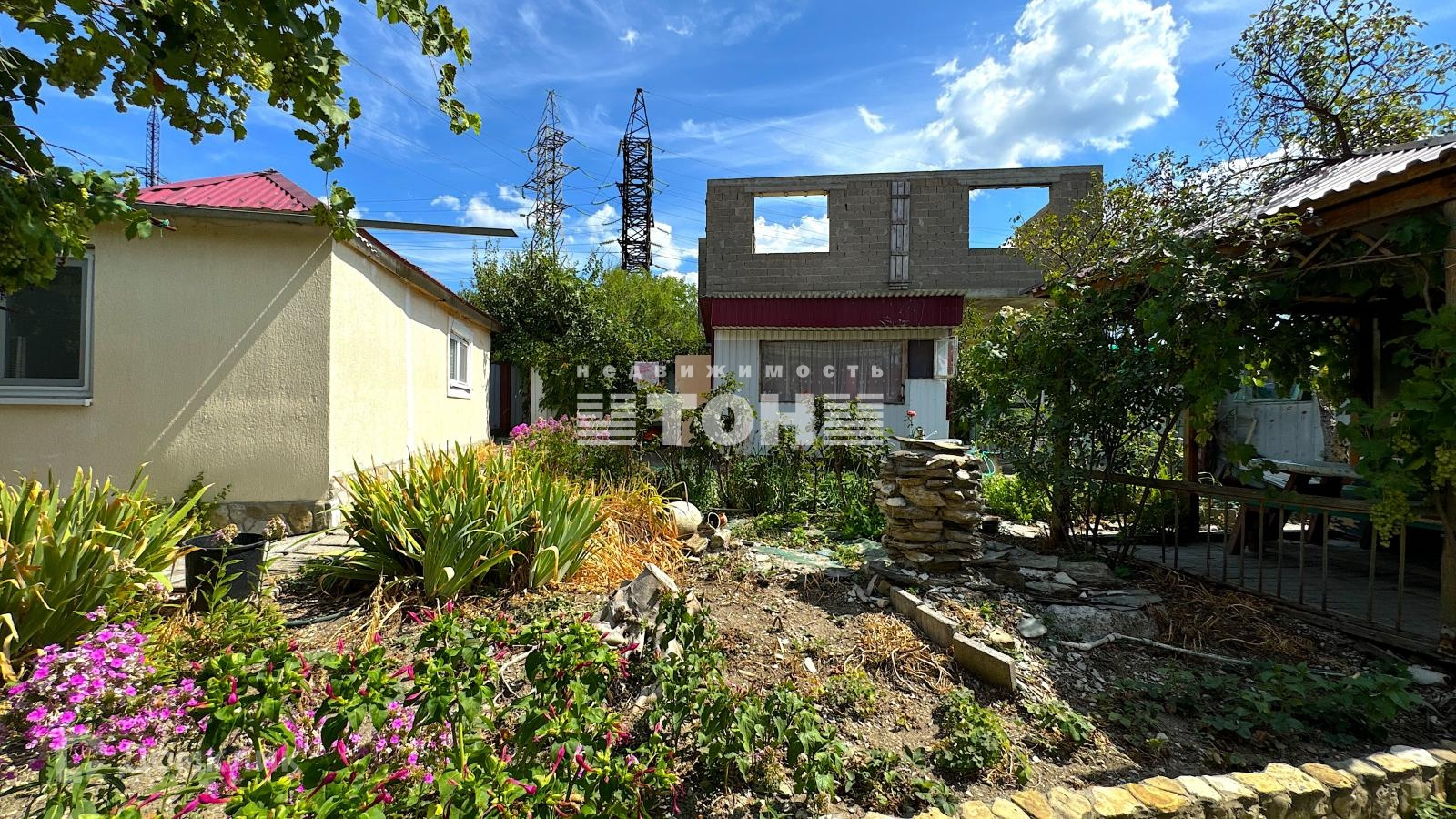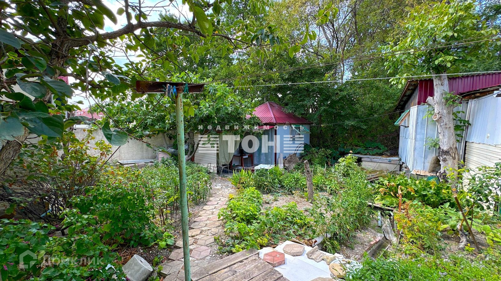 Двор большой и просторный, во дворе плодоносящие деревья, виноградники, беседки и много полезных летних построек.