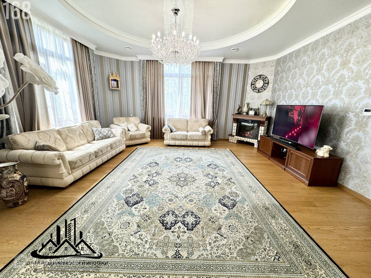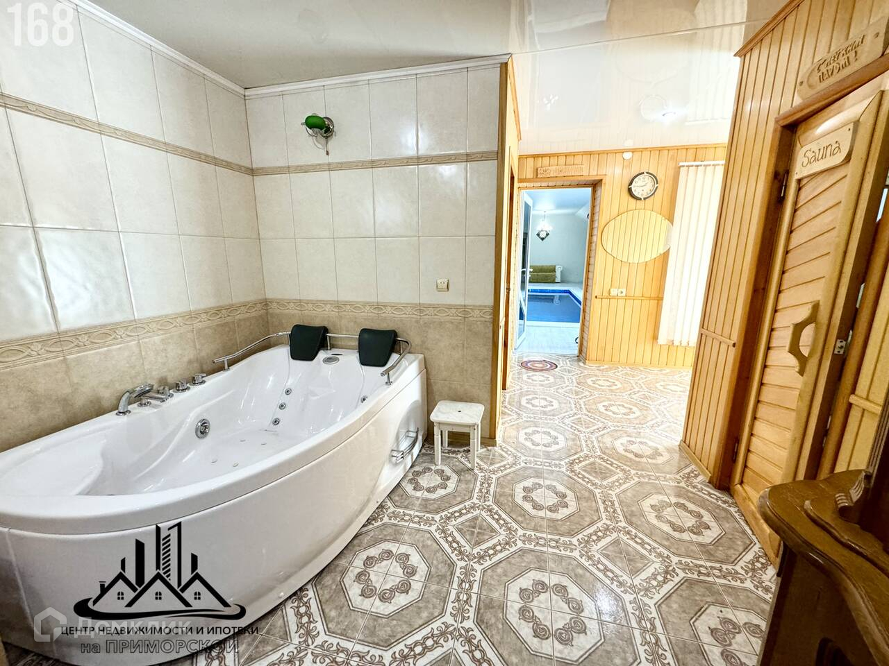 - На территории также есть гостевой дом площадью 120 квадратных метров, состоящий из четырех комнат, кухни и зоны отдыха. Основной дом площадью 520 квадратных метров выполнен в элегантном стиле с дизайнерским ремонтом. На первом этаже расположена просторная гостиная с лоджией и камином, большая кухня, жилая комната с собственным санузлом и гостевой санузел. На втором этаже две большие спальни, хозяйская спальня с санузлом, кабинет с лоджией и отдельный санузел. В цокольном этаже тренажерный зал, бильярдная, постирочная, мастерская, санузел и бойлерная. Все коммуникации центральные, установлены накопительные баки.