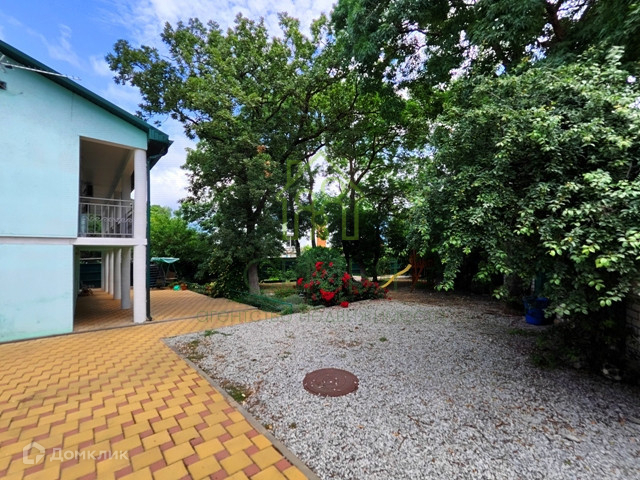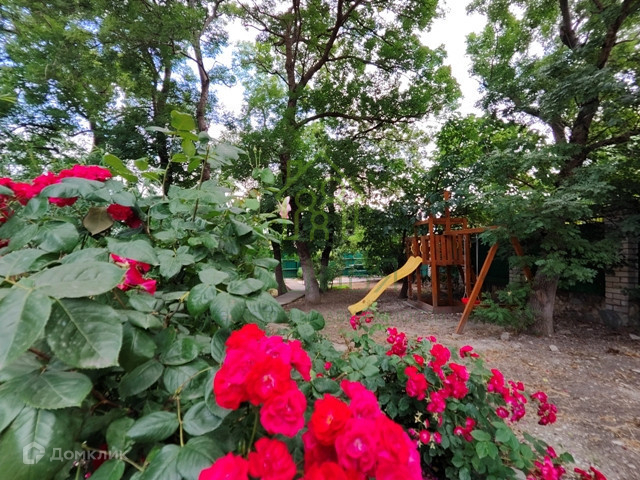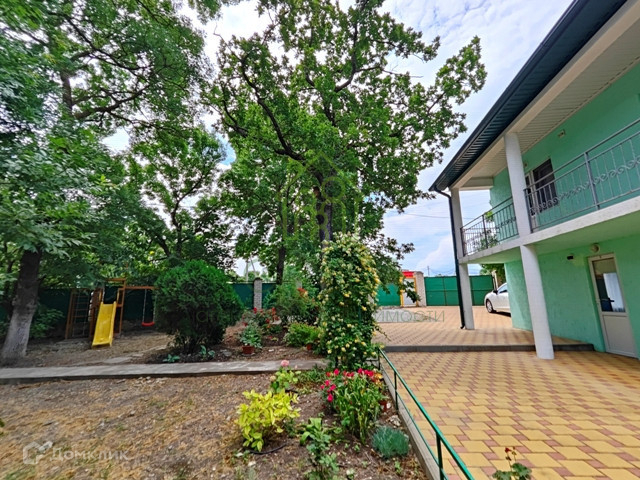На земельном участке растут деревья: ясень, вековой дуб, инжир и шелковица, есть детская площадка и зона барбекю.