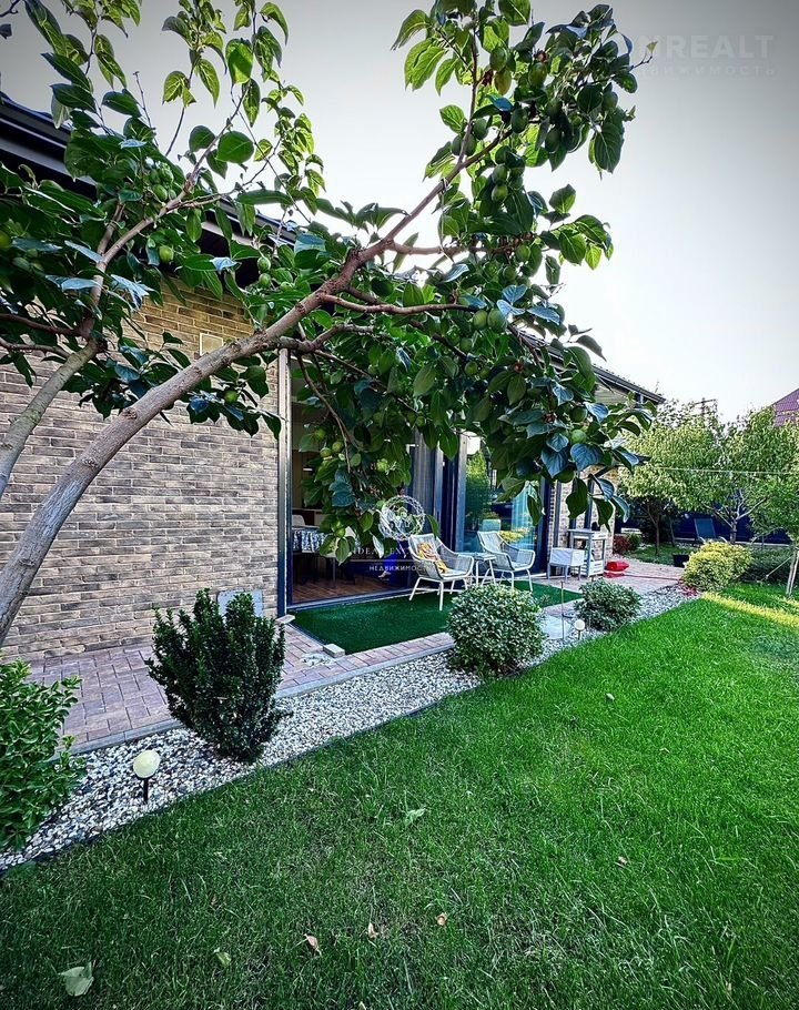 Внутренний двор — сад с фруктовыми деревьями (гранат, хурма, инжир, яблоня, груша, абрикос, слива), ландшафтный дизайн, автоматический полив, садовое освещение.