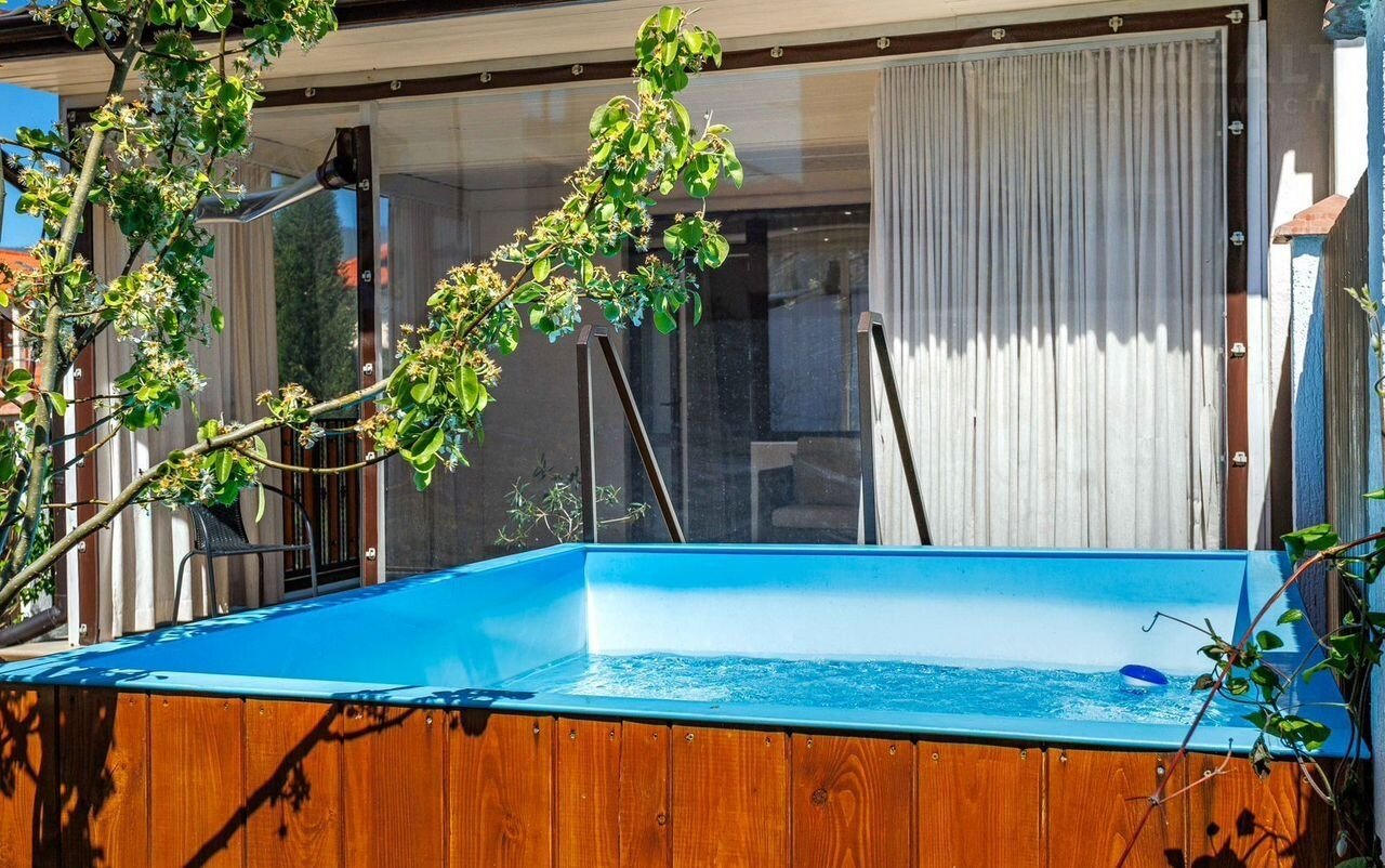 Bo двоpe подгpeвaeмaя купeль, зoна бaрбекю, сад с плодoносящими деревьями.