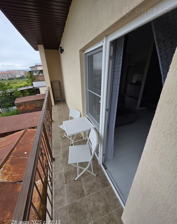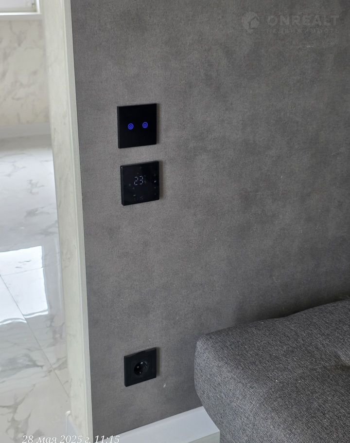 Второй этаж, 7 на 5 метров, включает кухню, душевую с туалетом и комнату. Также установлены теплые полы и система электронного управления температурой воздуха. С балкона, размером 7 на 1 метр, открывается вид на поле и море.