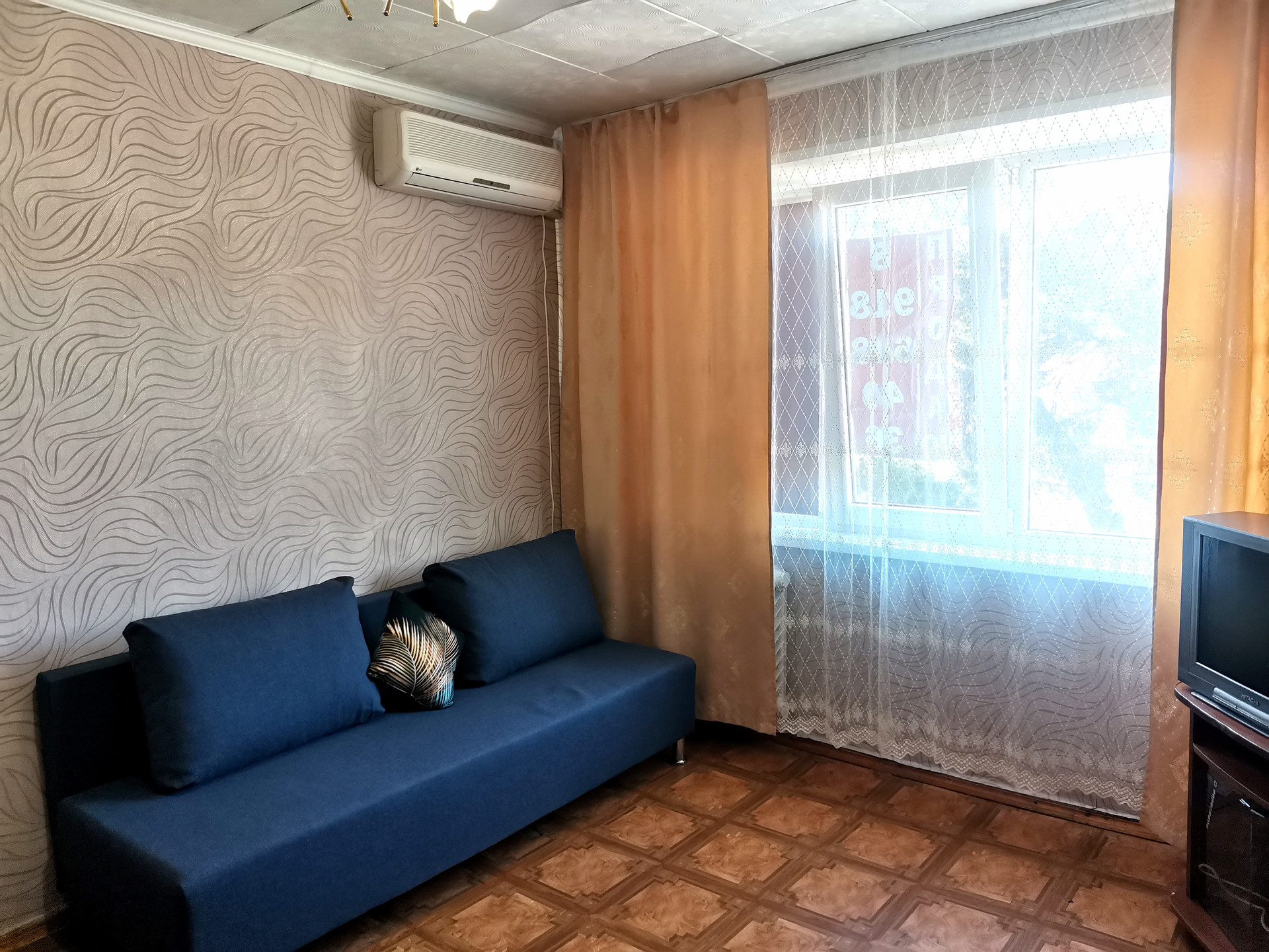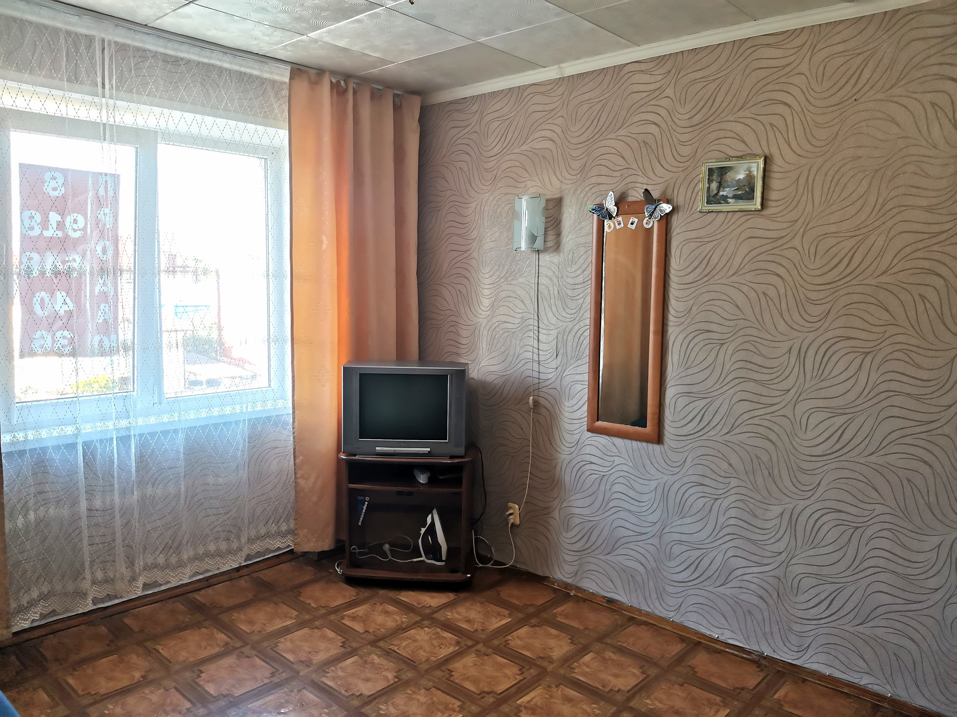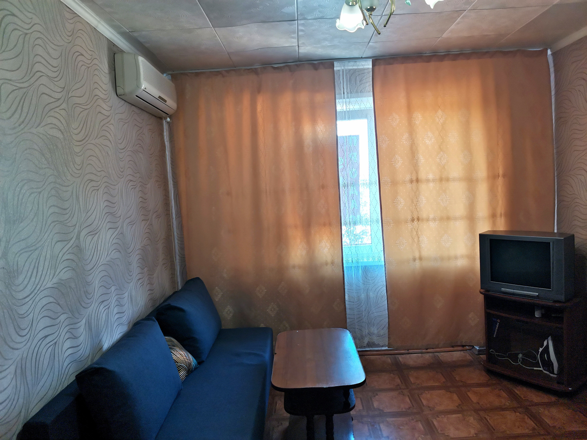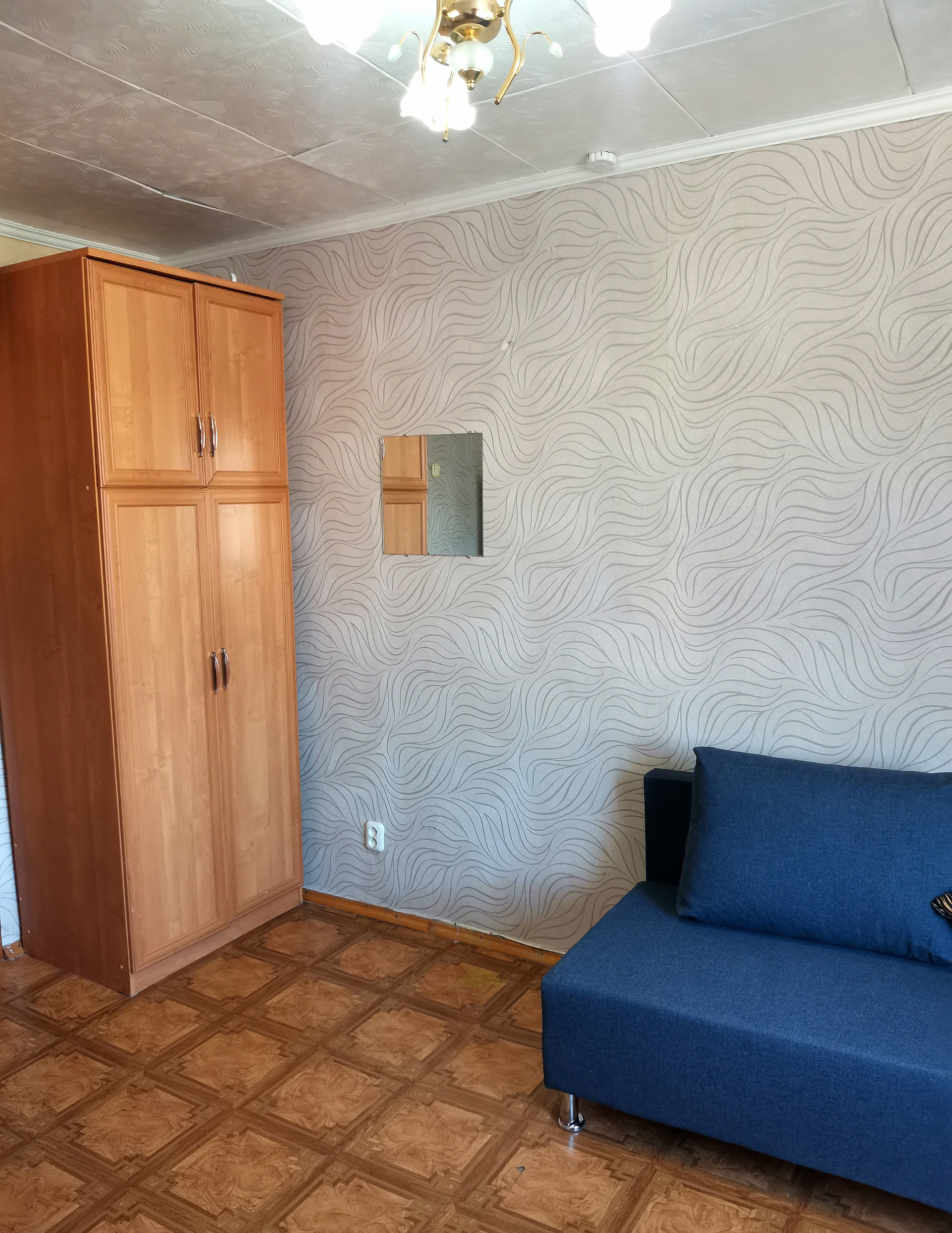 В комнате диван, шкаф, телевизор с проведенным телевидением, интернет, холодильник, сплит. Общая кухня на этаже, санузел на несколько комнат.
