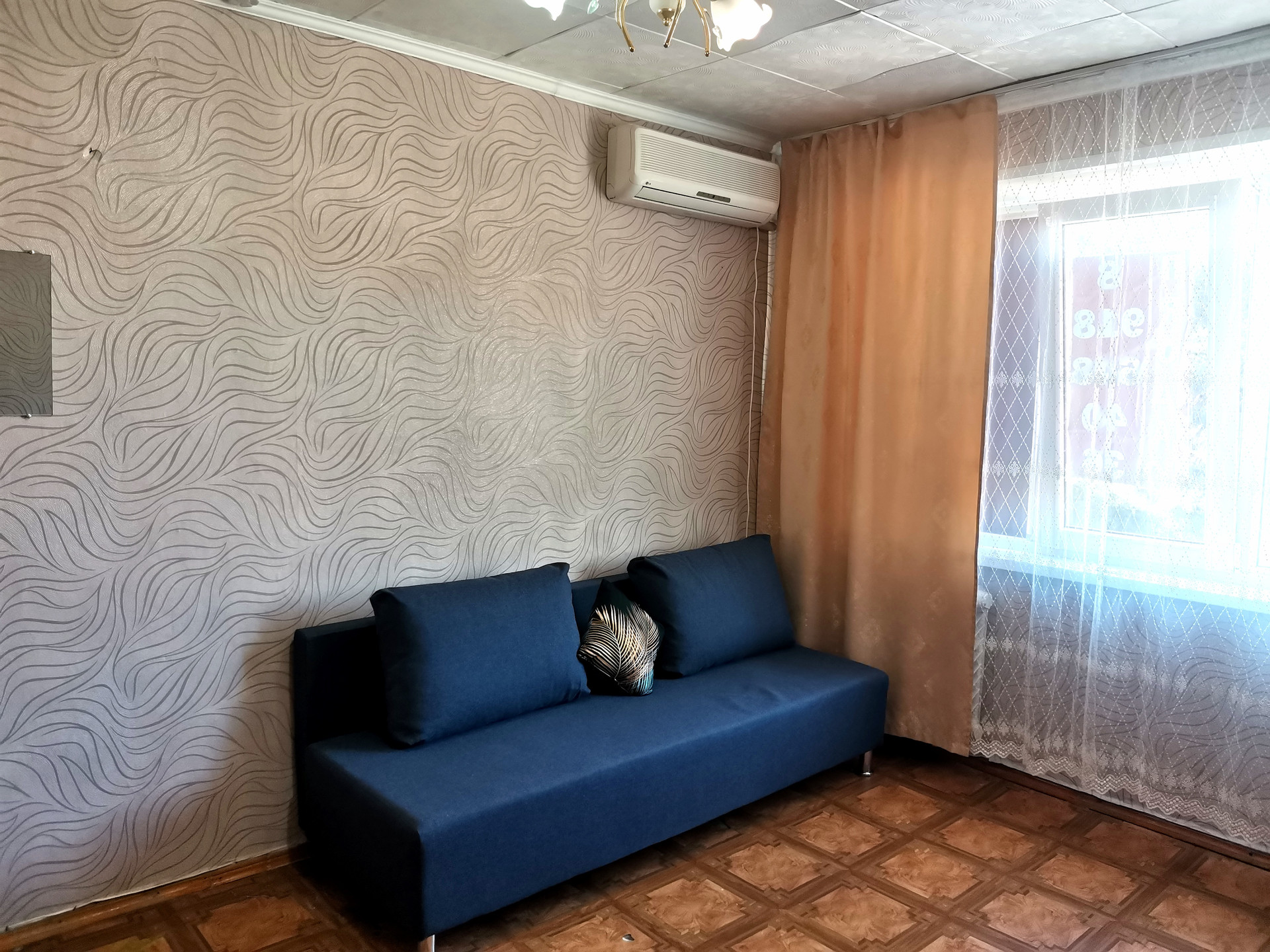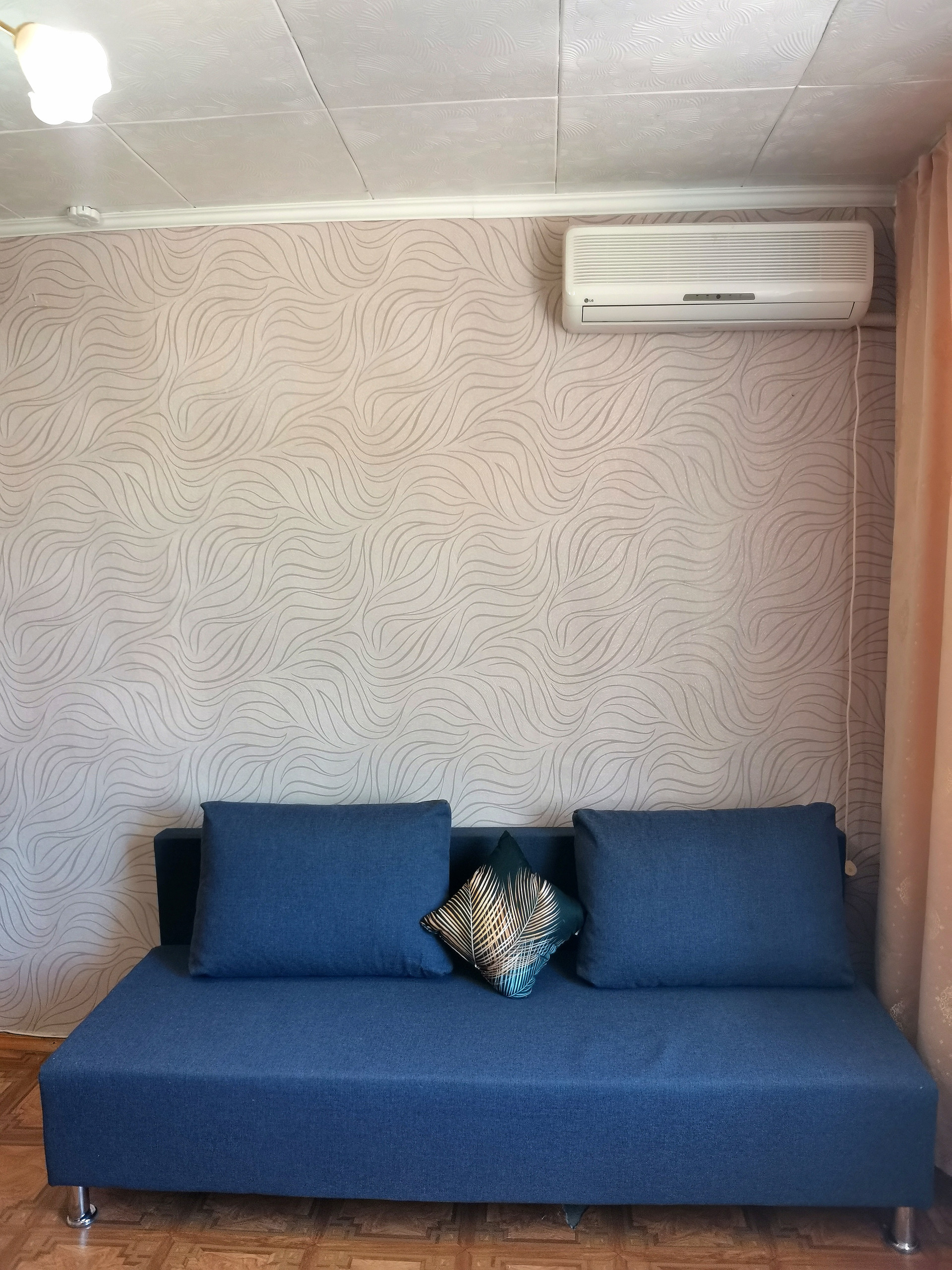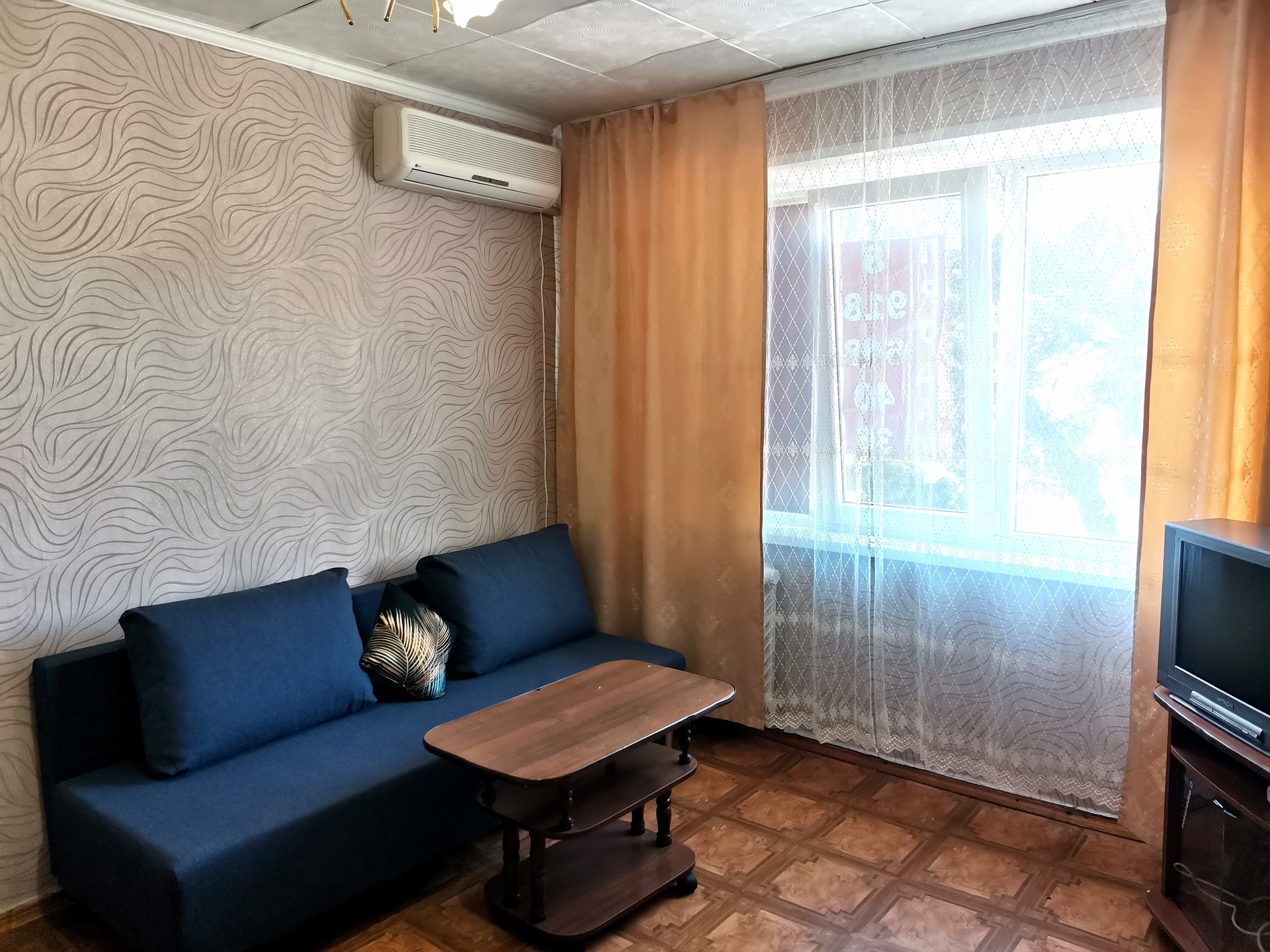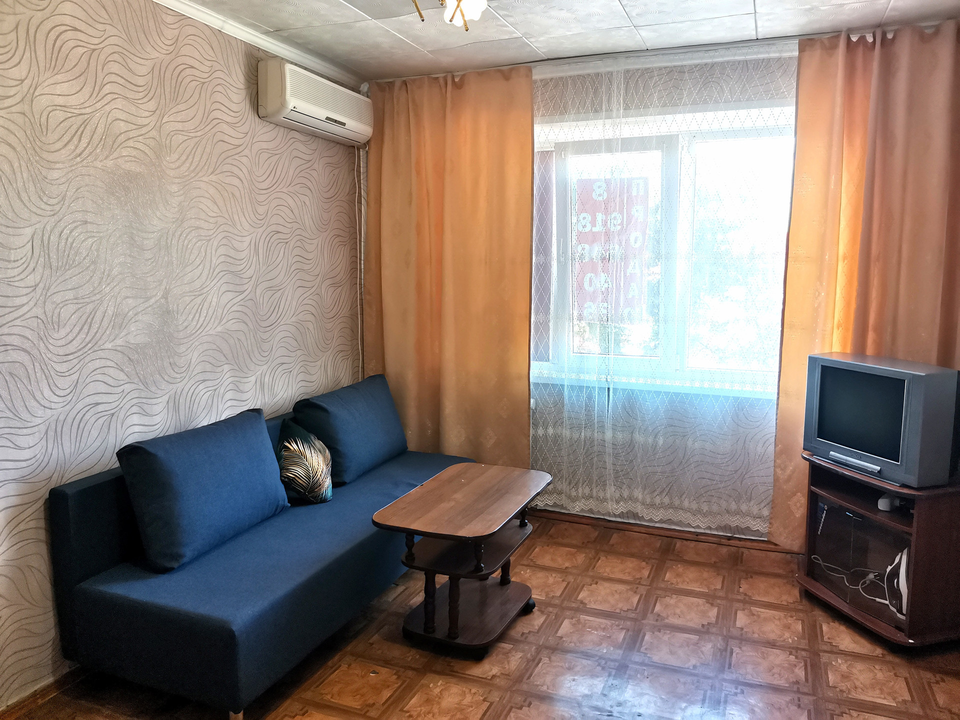 В комнате диван, шкаф, телевизор с проведенным телевидением, интернет, холодильник, сплит. Общая кухня на этаже, санузел на несколько комнат.