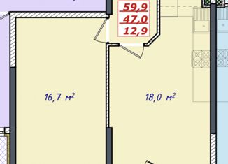 Общая площадь: 59.9 м2